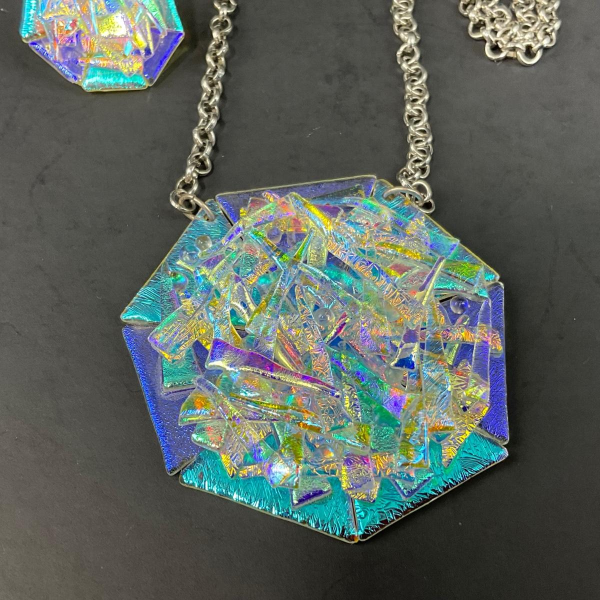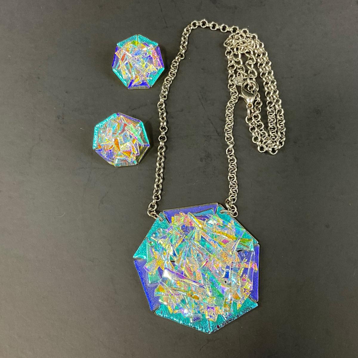 -78- JEWELRY | Dichroic Glass Necklace & Clip Earrings