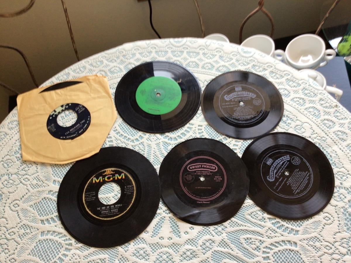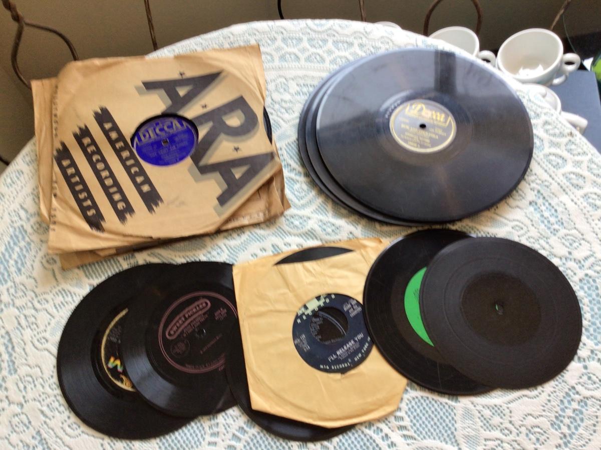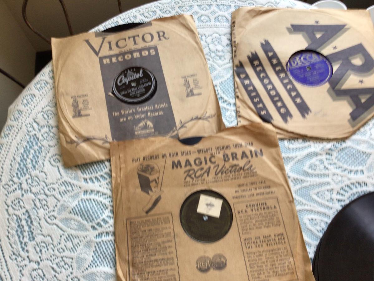 You get 78 records and 45 records. The 45’s there are two regular and three plastic.