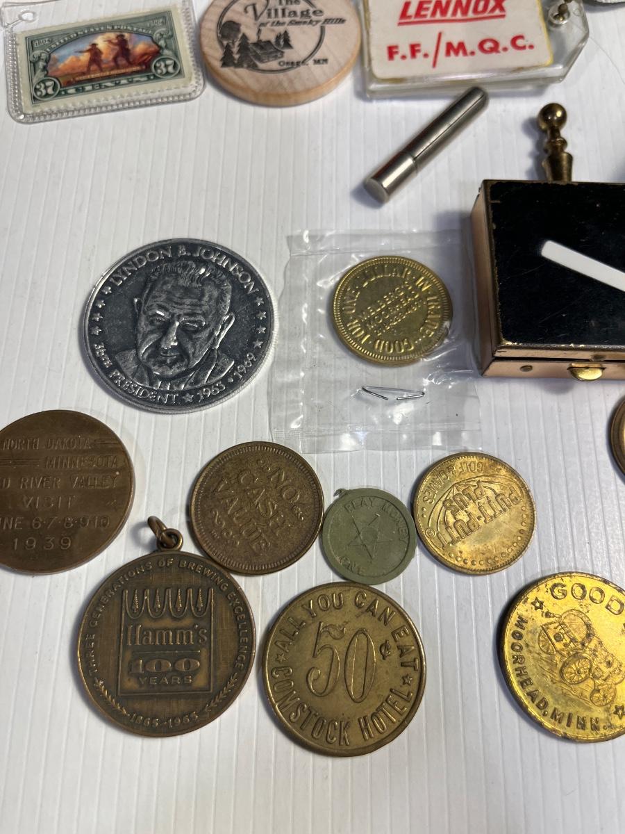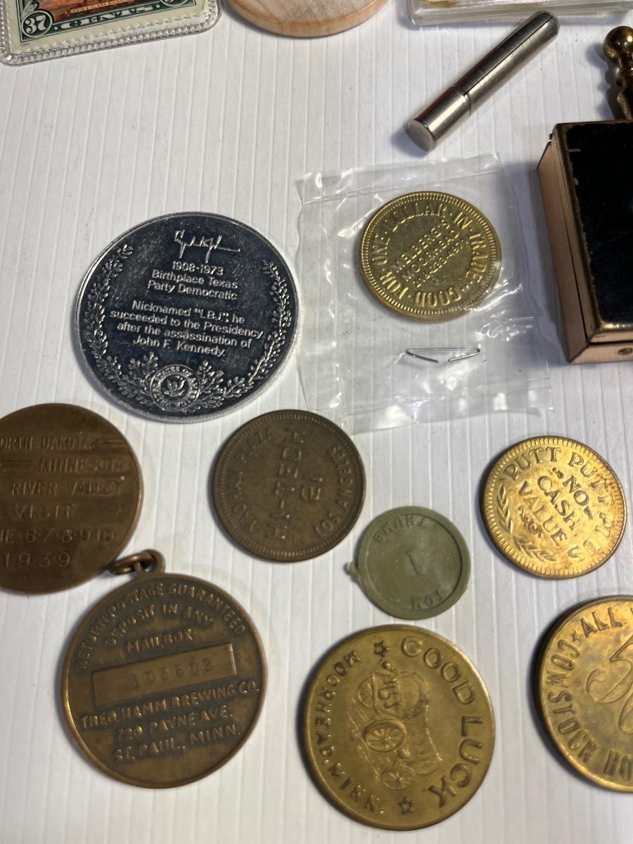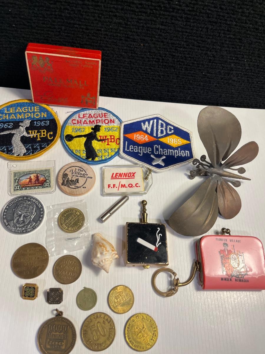 78- Vintage Items- coin purse, pocket ashtray, tokens