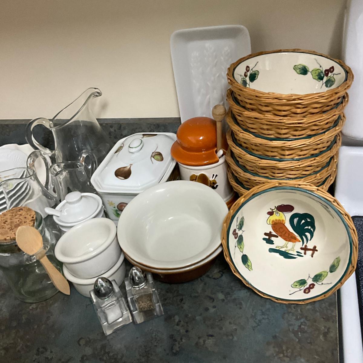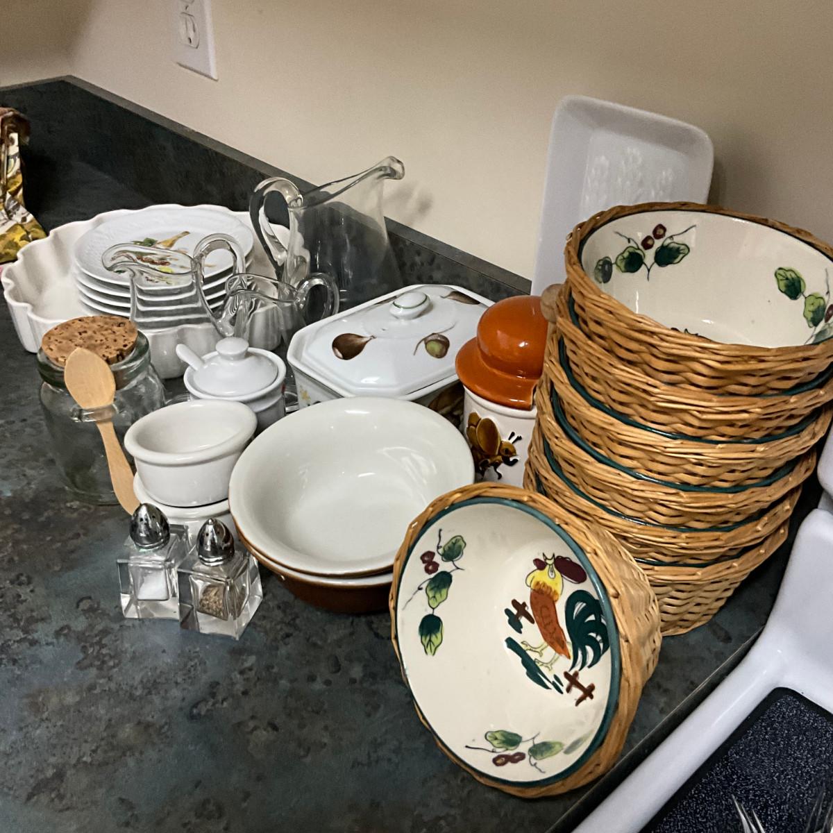 780 Lot of French Plates, Hall Bowls, Rooster Bowls
