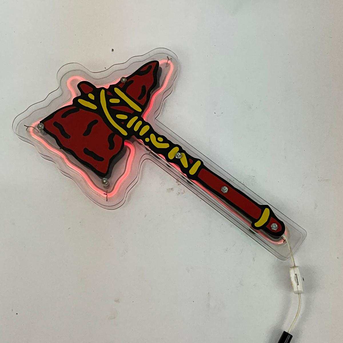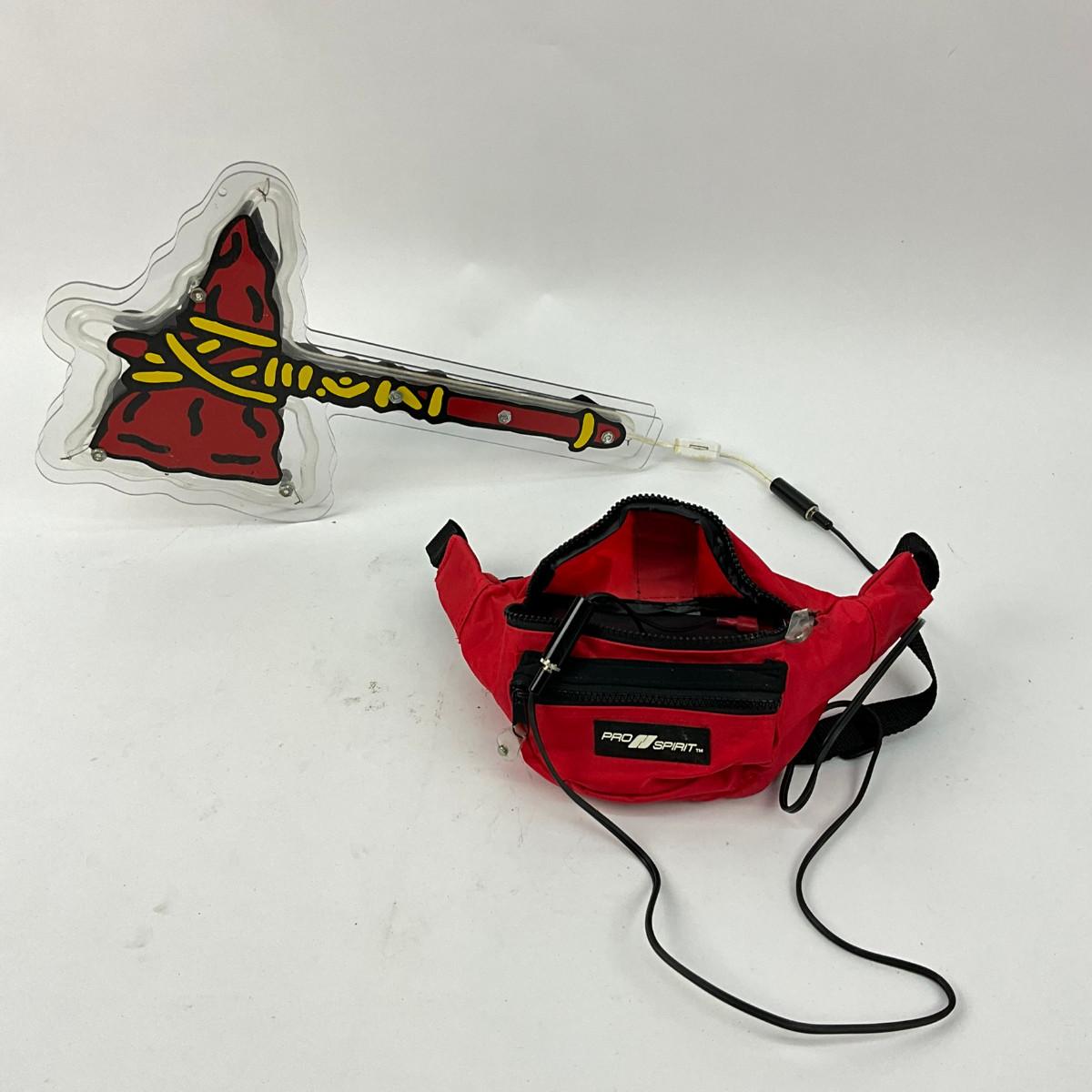 10 foam Souvenirs, #1 paper baseball fan, 1 Atlanta Braves Drum Rally, Neon Atlanta Braves Axe does work batteries need to be replaced (17" long)