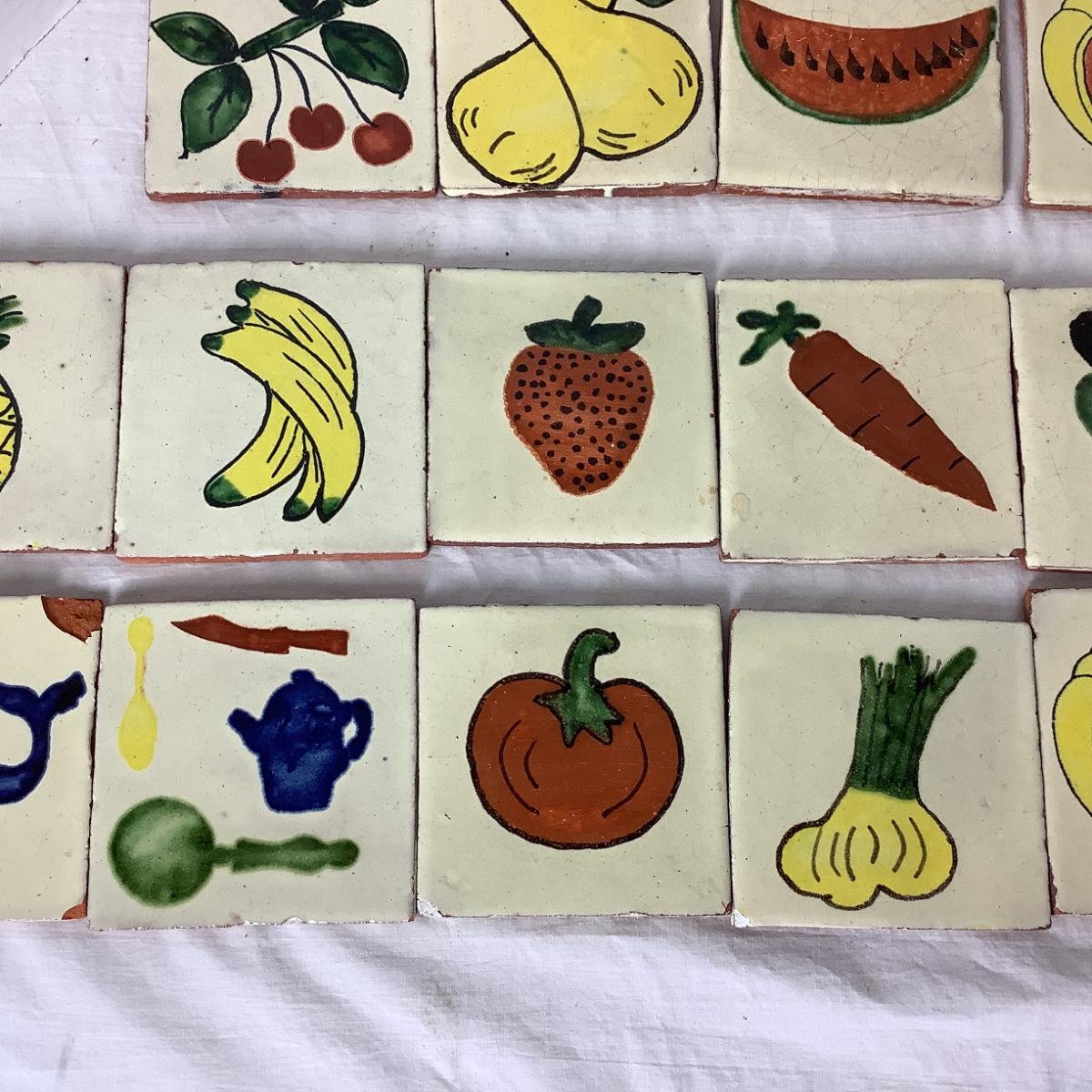 784 Vintage Hand painted Vegetable Terra Cotta Tiles
