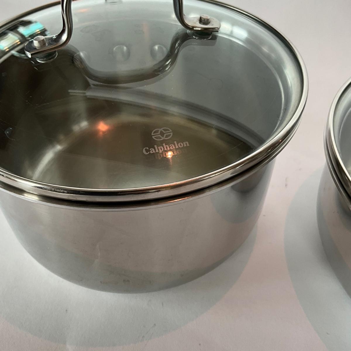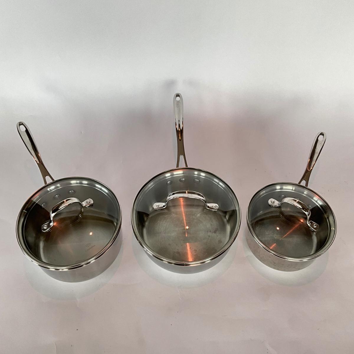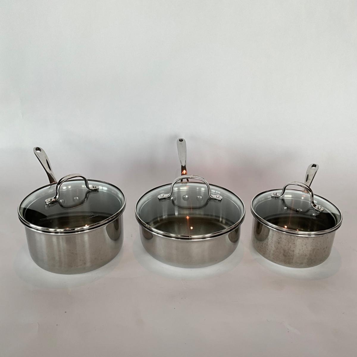 789 Set of 3 Calphalon Stainless Sauce Pots with lids