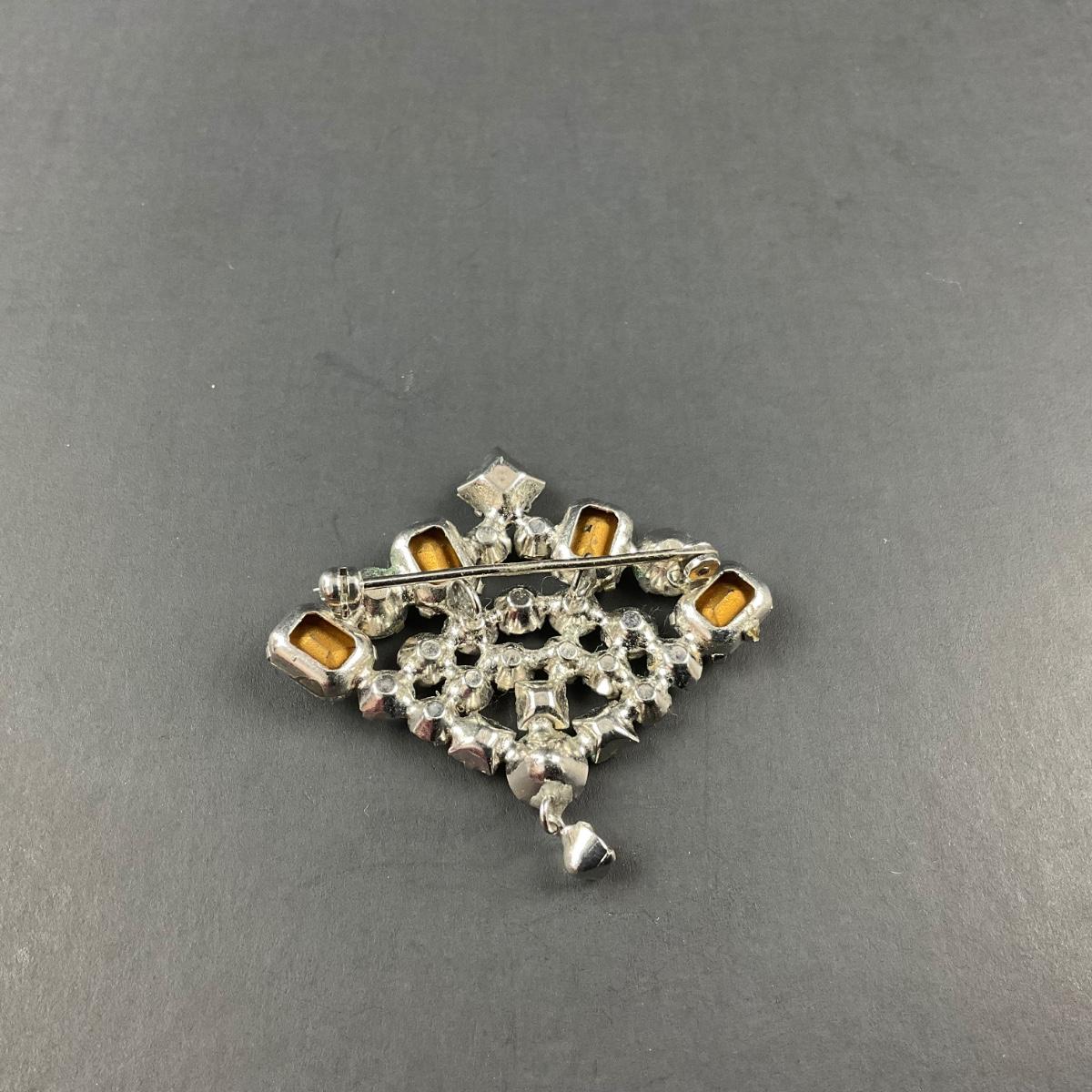 Three rhinestone brooch pieces. Please see photos for details and condition. Any condition statement is given as a courtesy to a client, is an opinion, and should not be treated as a statement of fact. Reference to condition written, oral or within a condition report shall not be regarded as a full account of condition and may not include all defects, alterations, or restorations. Absence of a condition report does not imply a lot is flawless or lacking imperfections or damage. Katherine’s Auction & Appraisal Service shall have no responsibility for any error or omission. Returns shall not be accepted on the basis of condition. ::: Shipping is available on this lot. If you require shipping you must let us know at the close of the auction. We will coordinate with you after the item has been won. Shipping fees will include insurance up to or exceeding the value of all items being mailed. If you have any questions regarding this lot please contact the auctioneer either via this website, by direct email or by phone. PICK UP TIMES and other important information can be found in the TERMS and DESCRIPTION of the auction. Please take a look for pertinent information. Thanks!