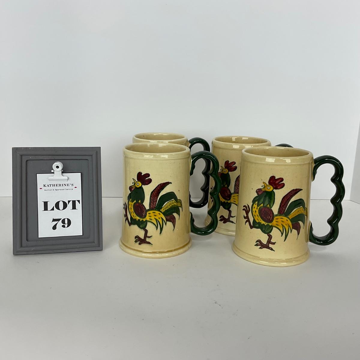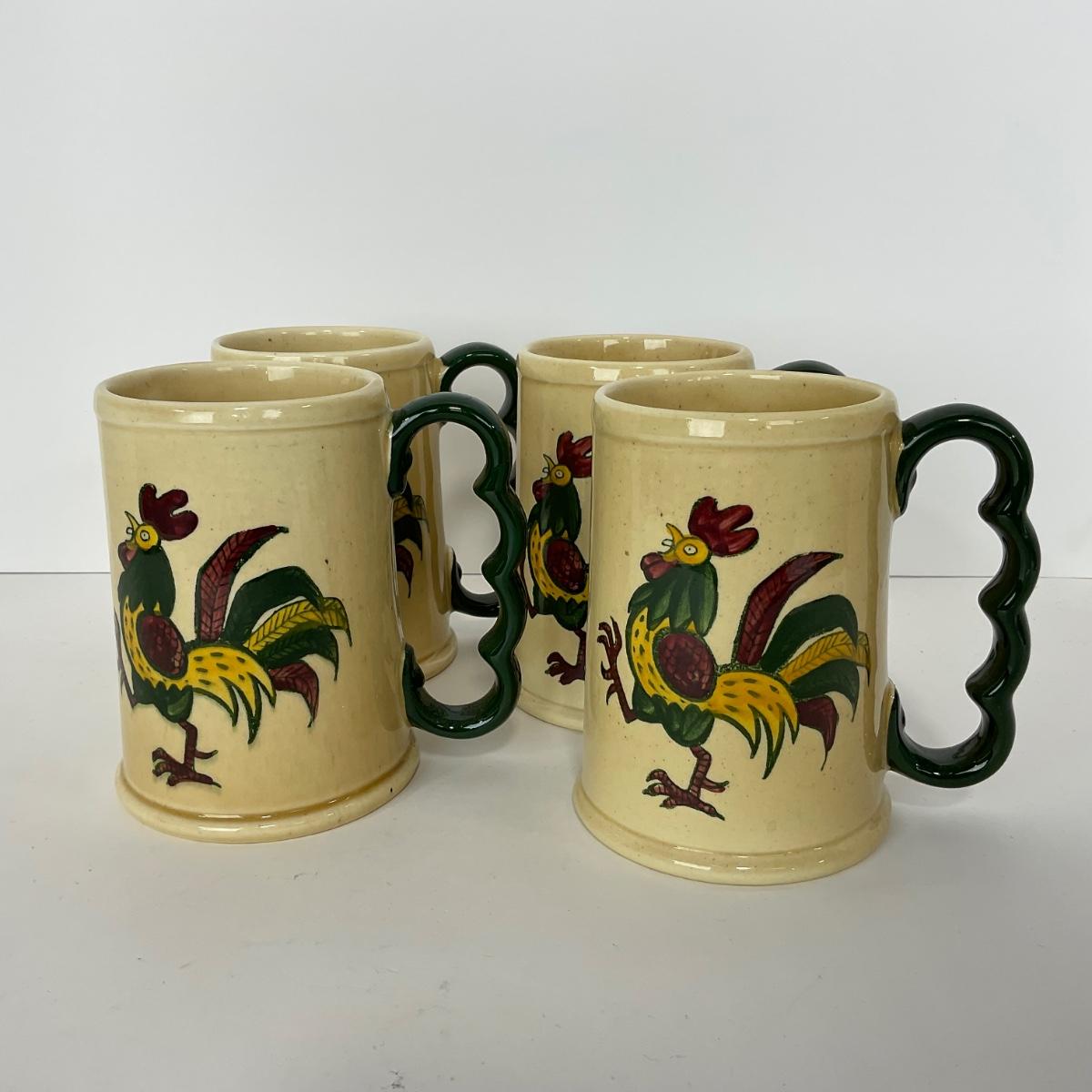 Four Rooster Metlox Poppytrail California Pottery mugs in good shape. Please see photos for details and condition. ::: Shipping is available on this lot. If you require shipping you must let us know at the close of the auction. We will coordinate with you after the item has been won. Shipping fees will include insurance up to or exceeding the value of all items being mailed. If you have any questions regarding this lot please contact the auctioneer either via this website, by direct email or by phone. PICK UP TIMES and other important information can be found in the TERMS and DESCRIPTION of the auction. Please take a look for pertinent information. Thanks!