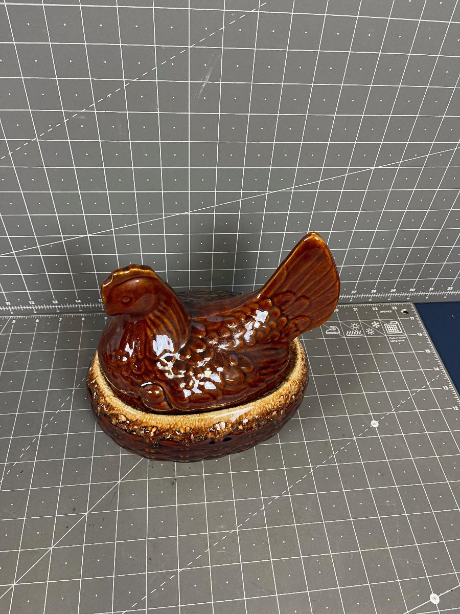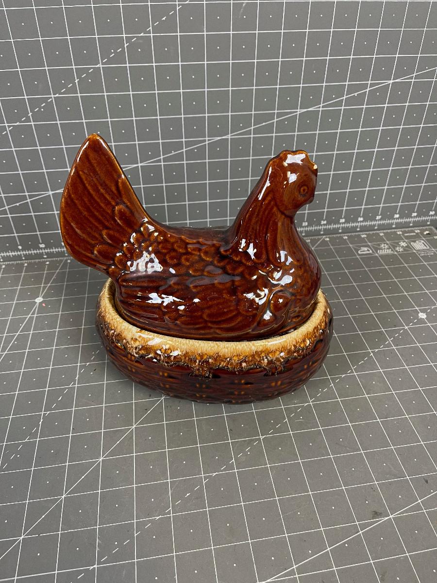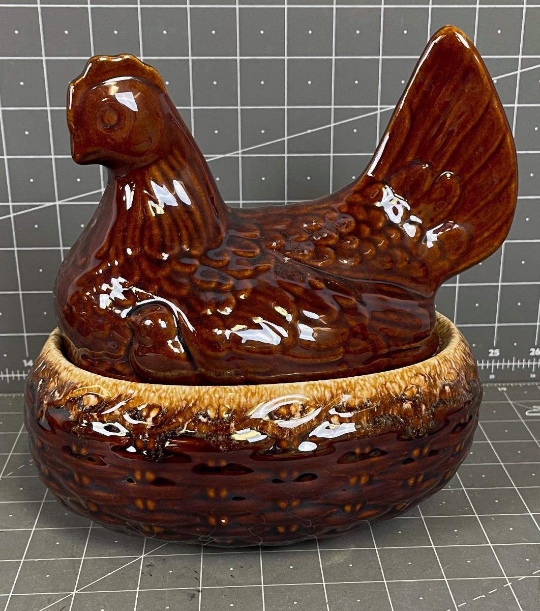 #79 Lidded Chicken in a basket Dish, Hull Drip Edge Bake N Serve