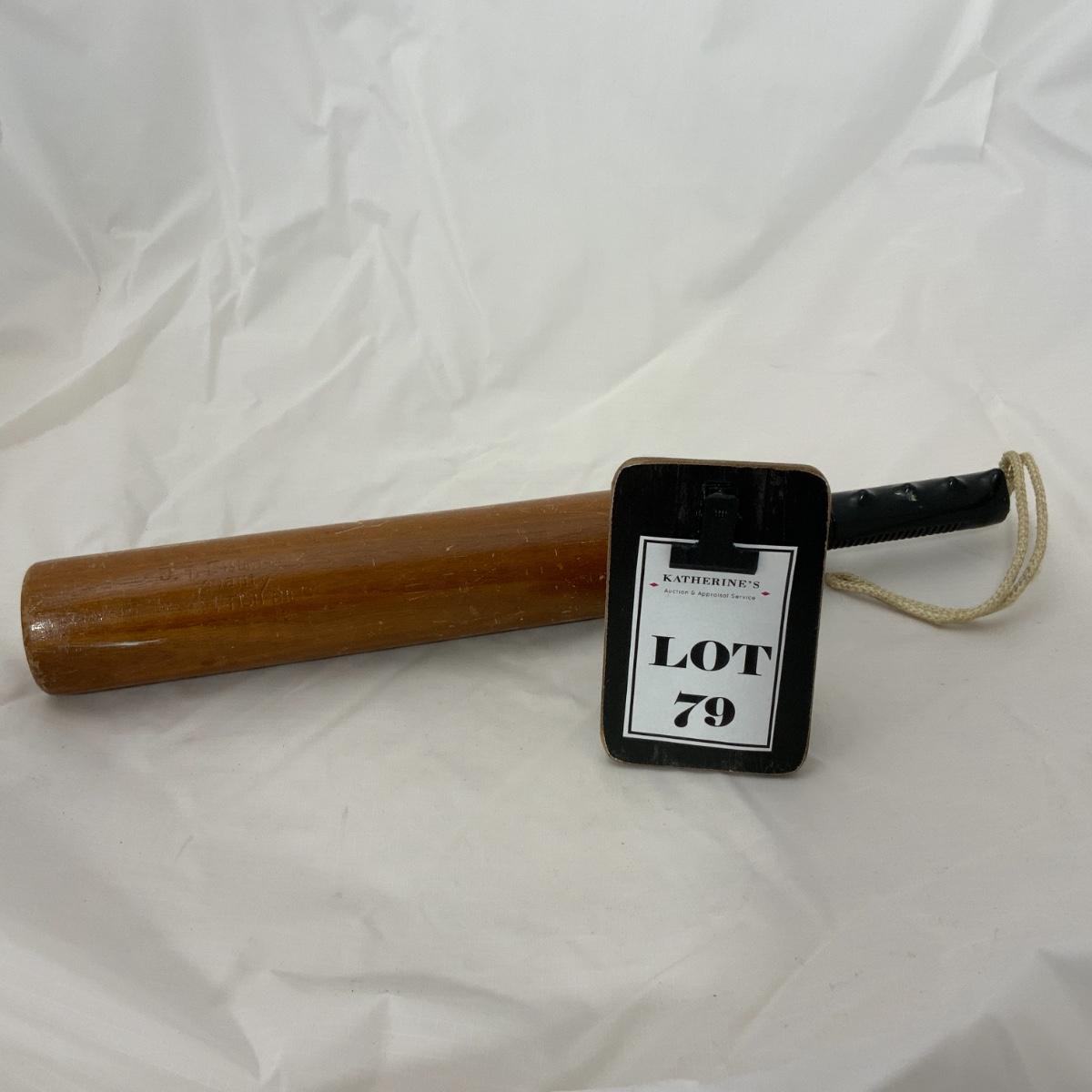 From the Estate of Peter Radovanovich: Fish Billy Club. Pressed into the side of the club is this: J.T. Fischer Quality Fish Billy. 496 TB. Measures 16.5” Long. Please see photos for details and condition. ::: Shipping is available on this lot. If you require shipping you must let us know at the close of the auction. We will coordinate with you after the item has been won. Shipping fees will include insurance up to or exceeding the value of all items being mailed. If you have any questions regarding this lot please contact the auctioneer either via this website, by direct email or by phone. PICK UP TIMES and other important information can be found in the TERMS and DESCRIPTION of the auction. Please take a look for pertinent information. Thanks!