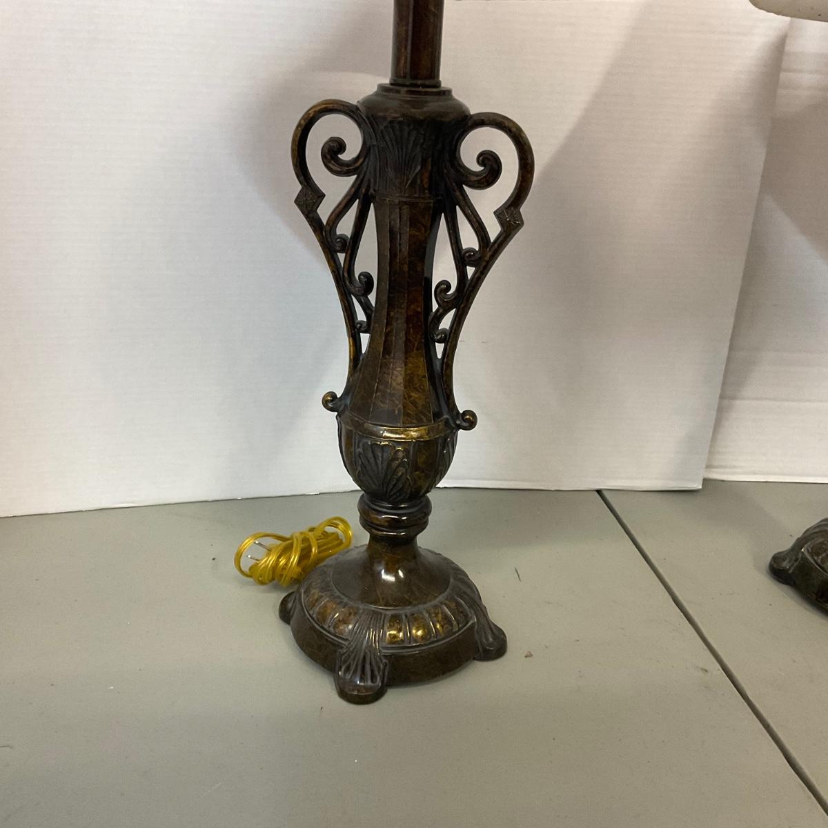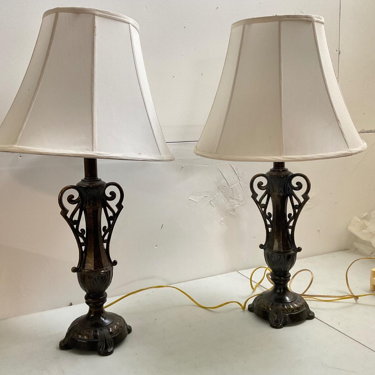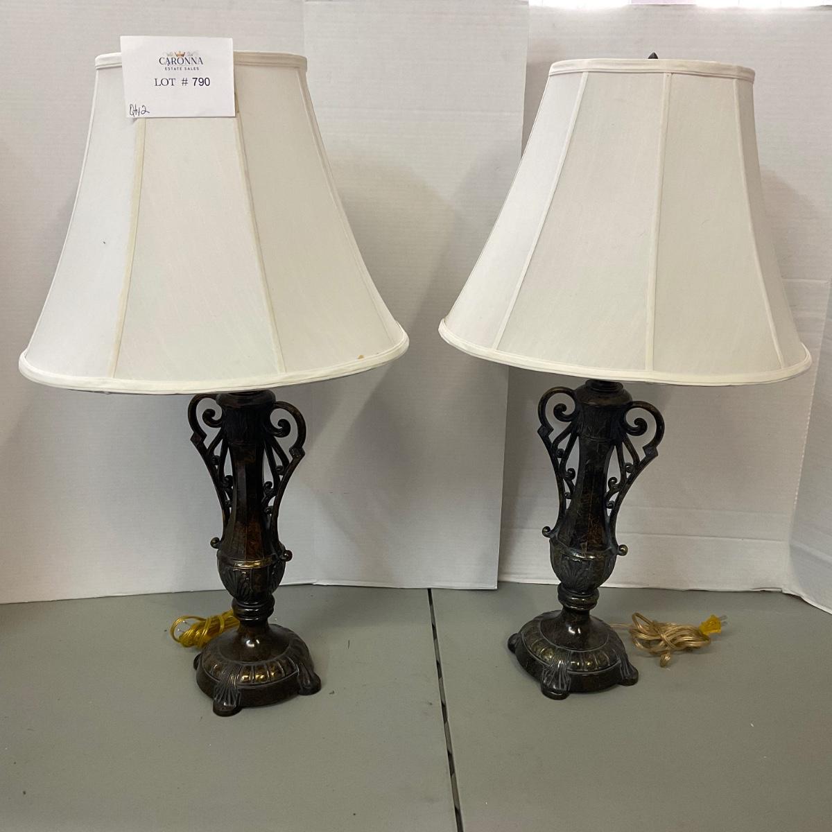 790 Pair of Metal Double Handled lamps with Shades