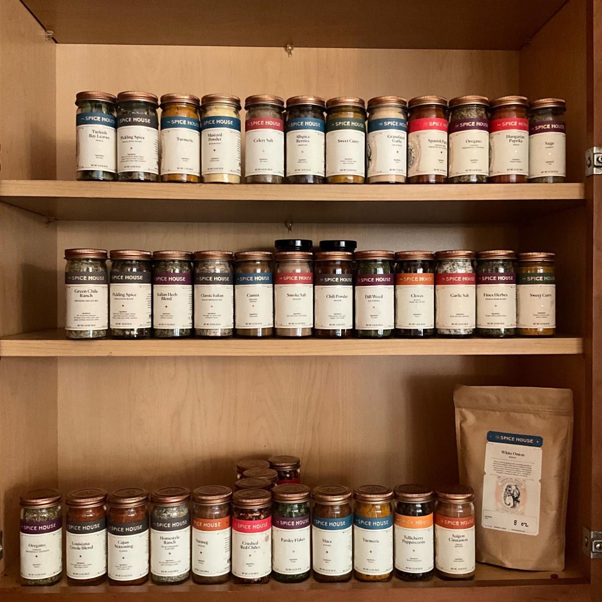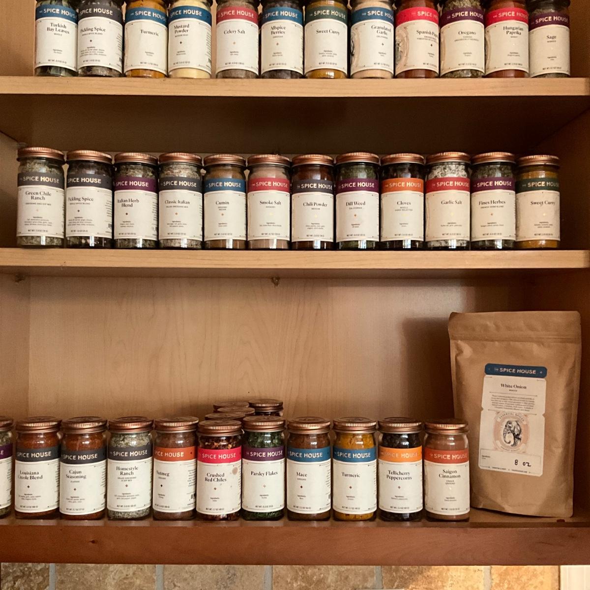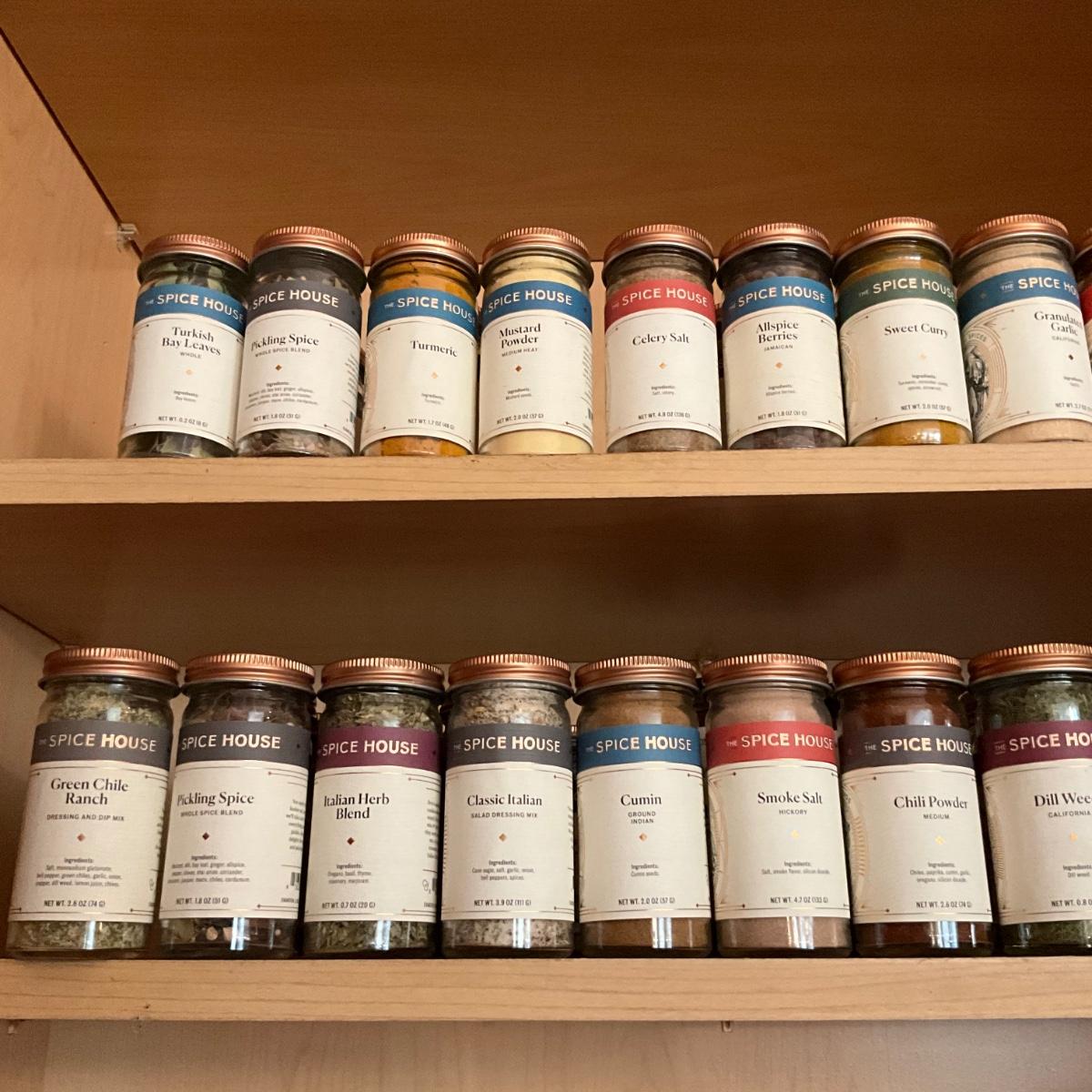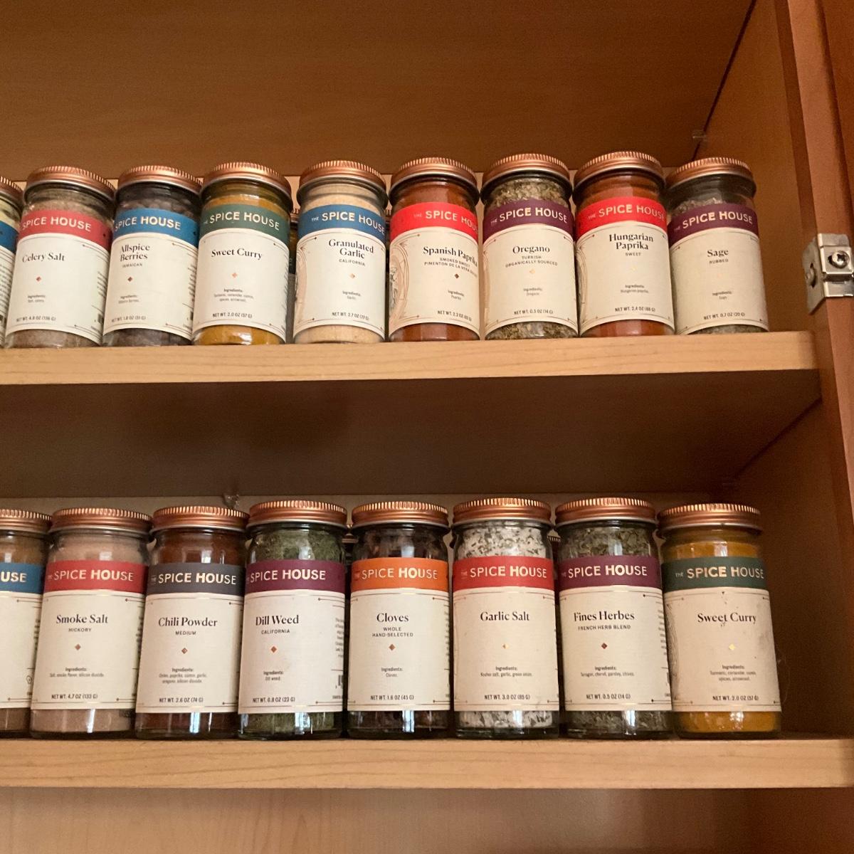 Various curry , salts sage, Hungarian paprika , oregano spanish paprika , granulated garlic, sweet curry , all spice berries, celery salt , mustard powder, turmeric, pickling spice, Turkish bay leaves , green chile ranch, pickling spice , Italian herb blend, classic Italian, cumin, smoke salt, chili powder, dill weed, cloves, garlic salt, fine herbs, sweet curry, oregano, louisiana creole blend, Cajun seasoning, homestyle ranch, crushed red chiles, parsley flakes, mace, turmeric, tellicherry peppercorns, Saigon cinnamon, white onion