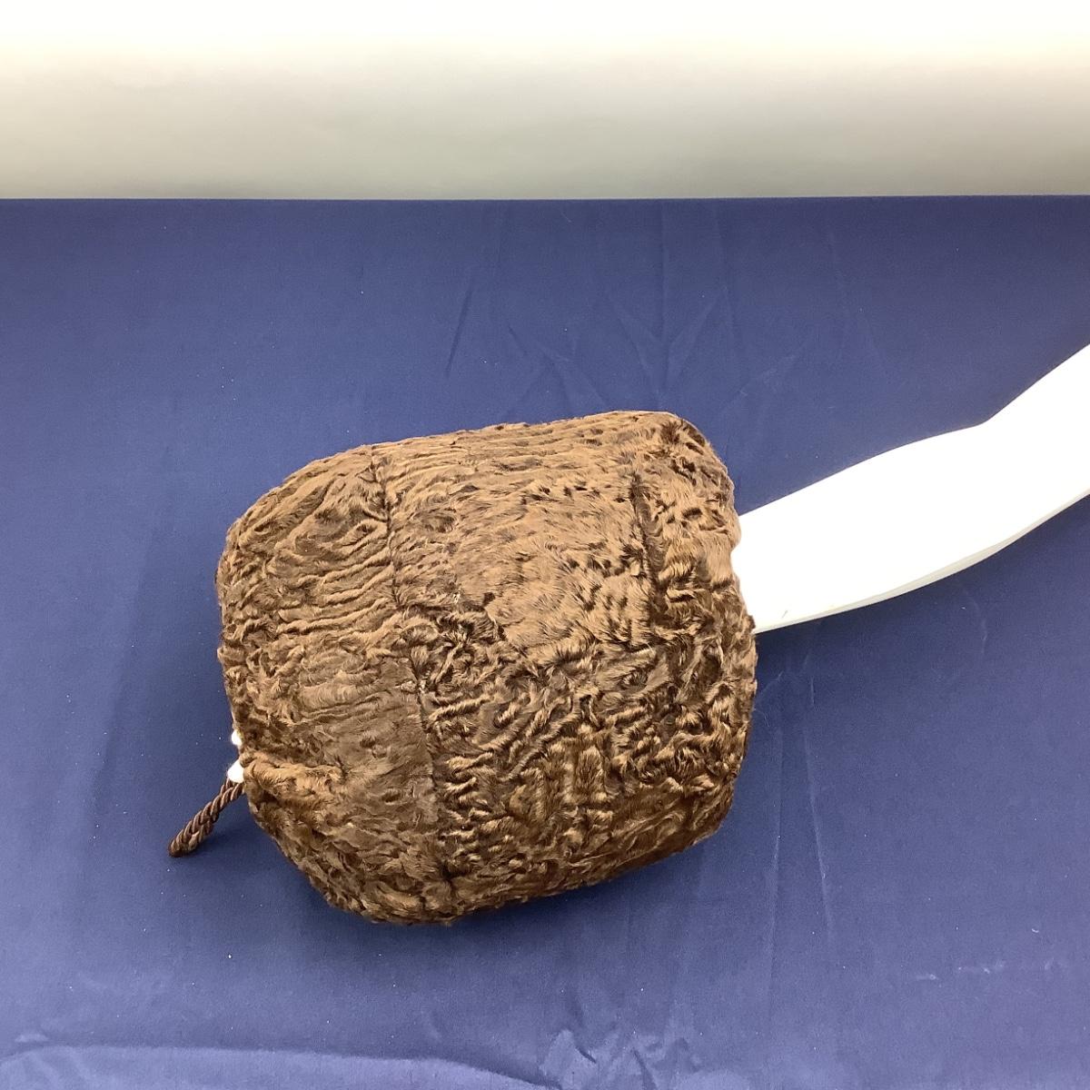 The muff is 9"x9"x5", fully lined with internal hidden zippered pocket.