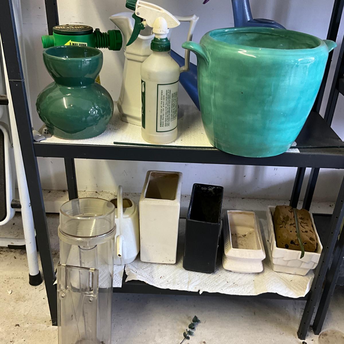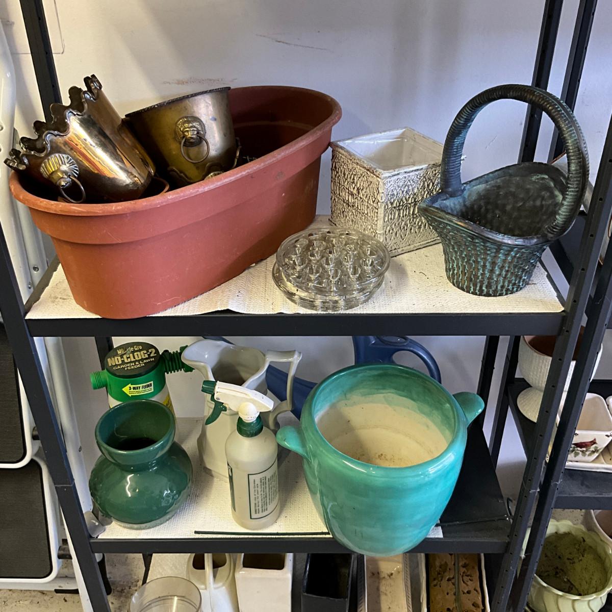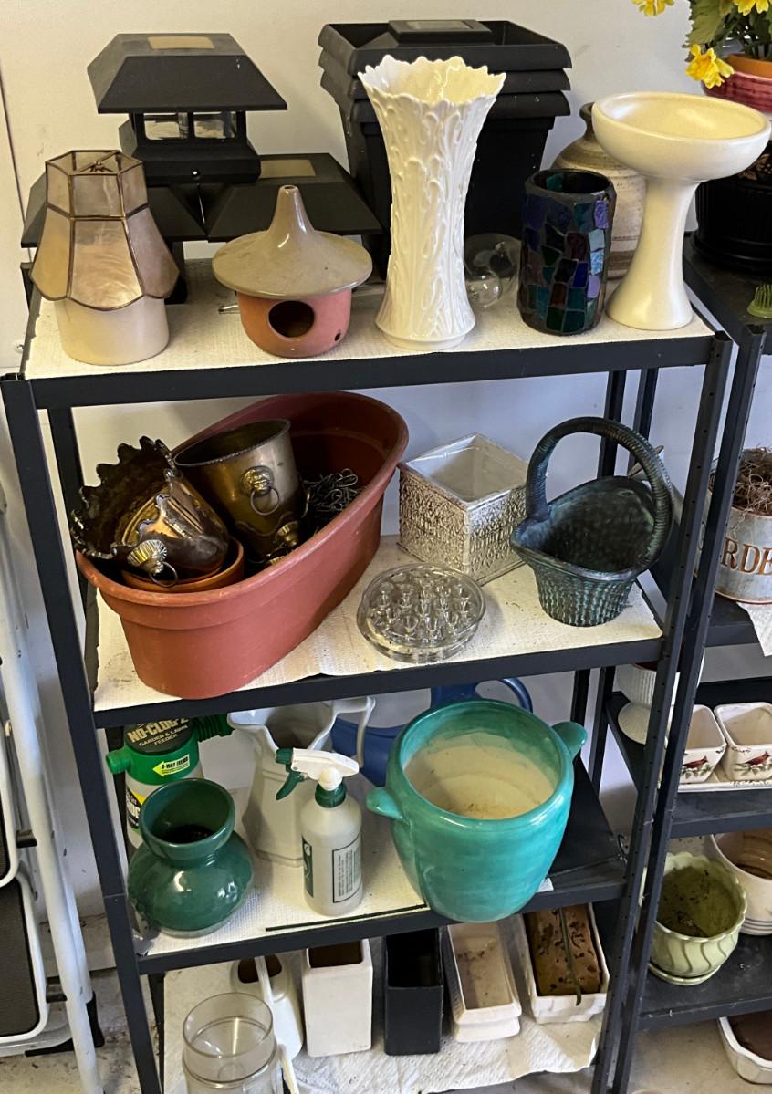 795 Large Lot of Outdoor Plant Pots With Shelf
