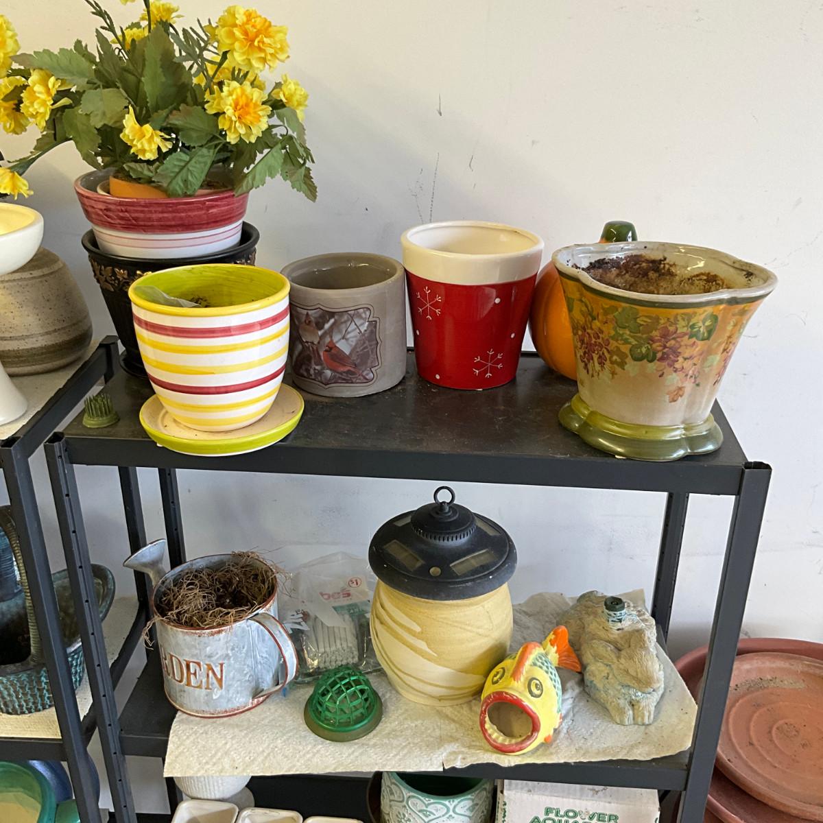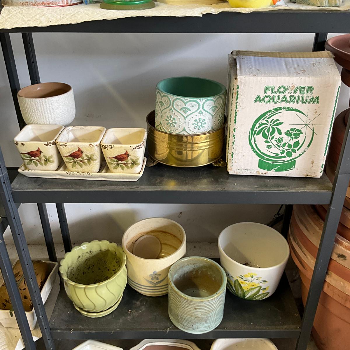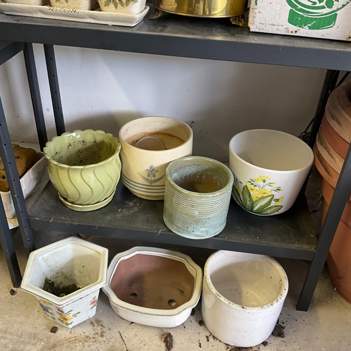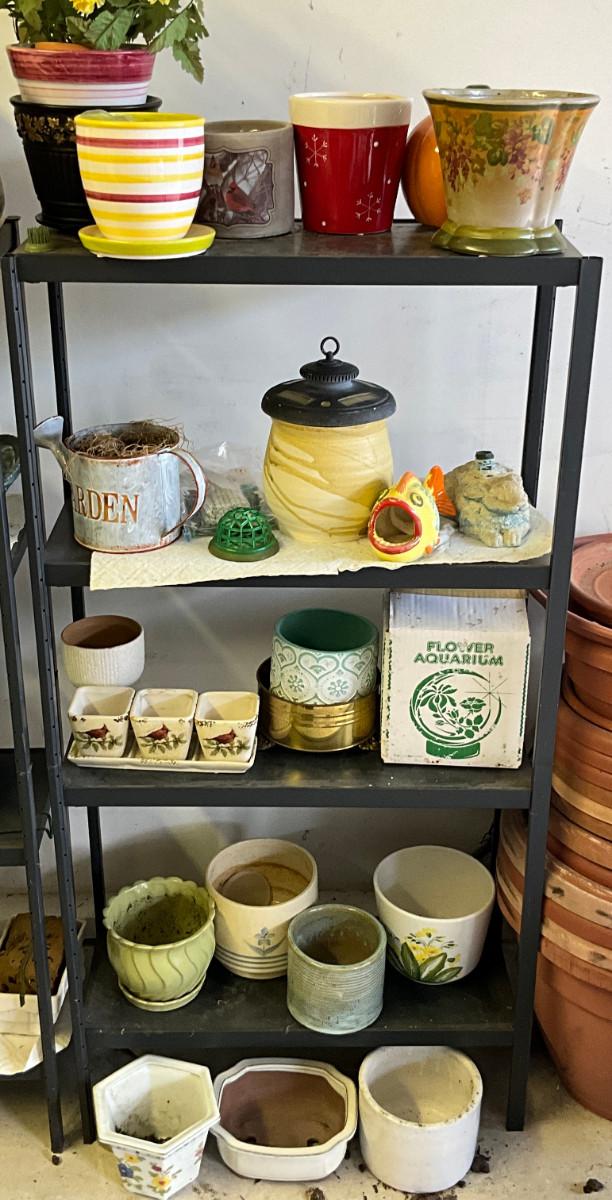 796 Large Lot of Terracotta & Glazed Pottery With Shelf