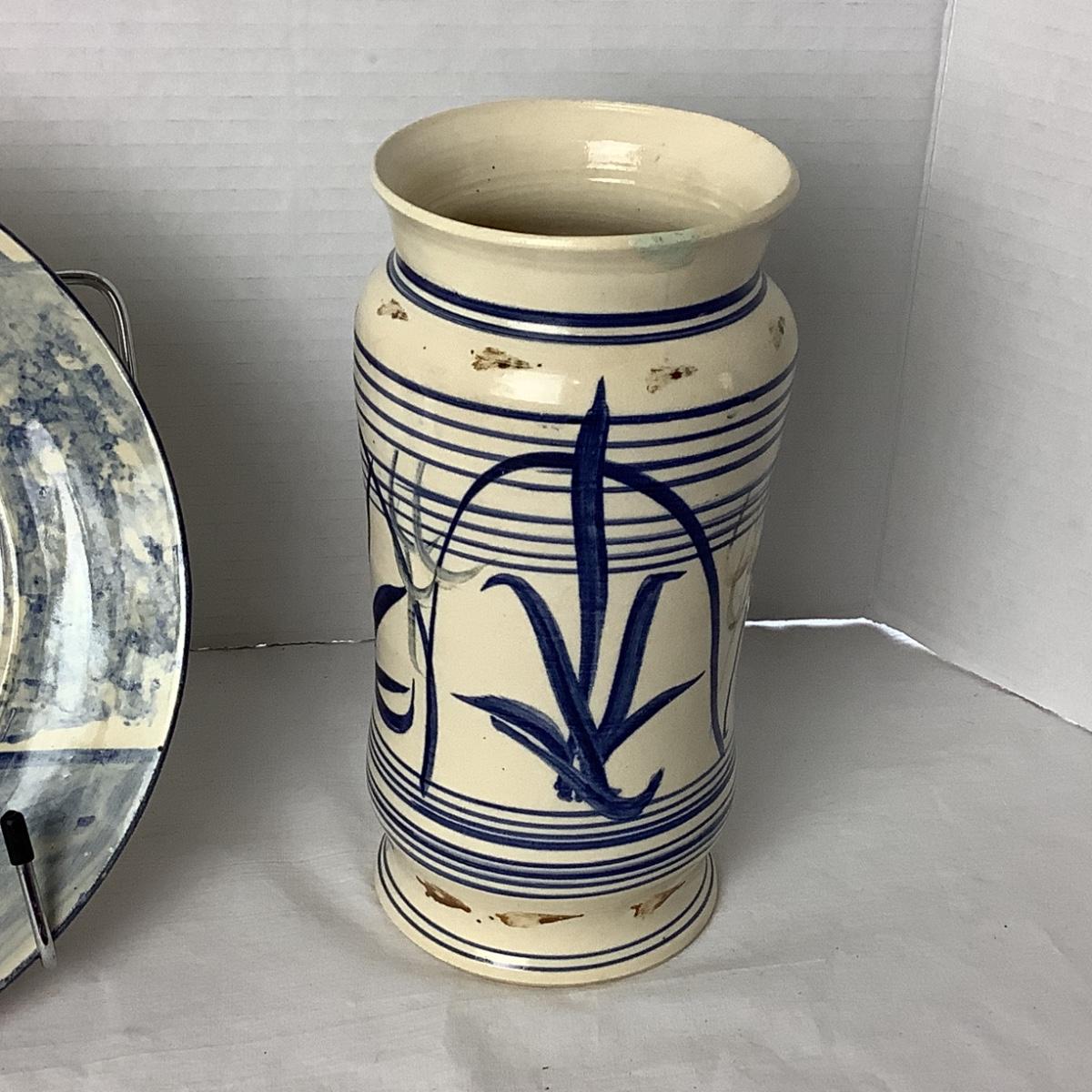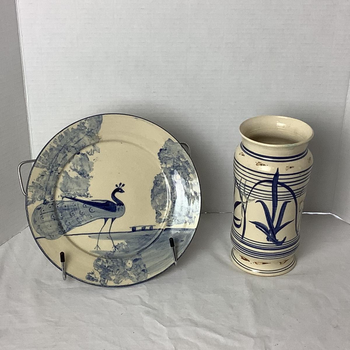 Plate measures 9" round and vase is 8" high