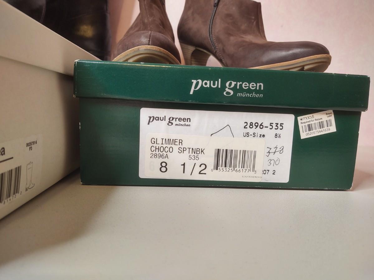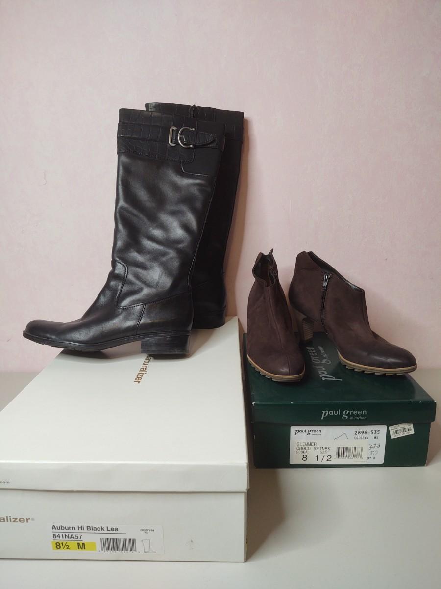 Naturalizer and Paul Green boots. The Paul Green boots have a $284 receipt from Macy's. Size 8.5.