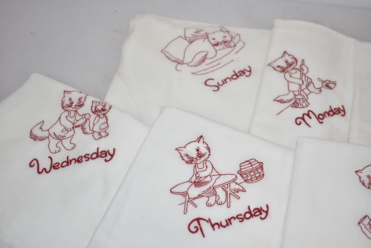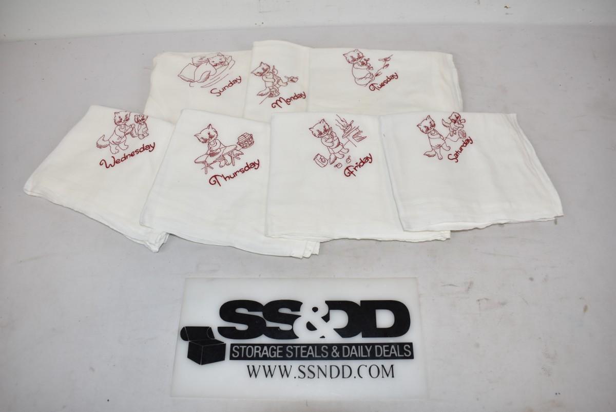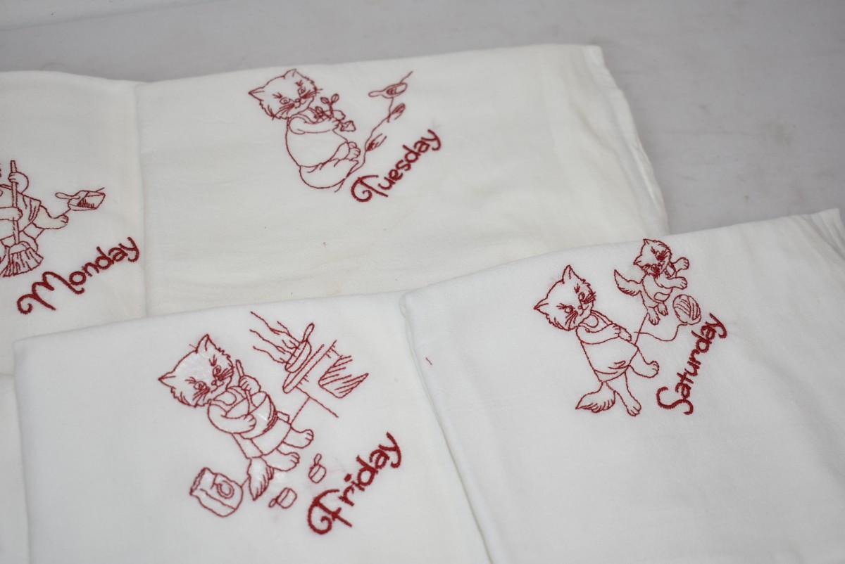 7pc Cat Kitchen Cloths, Days of the Weeks - Good condition