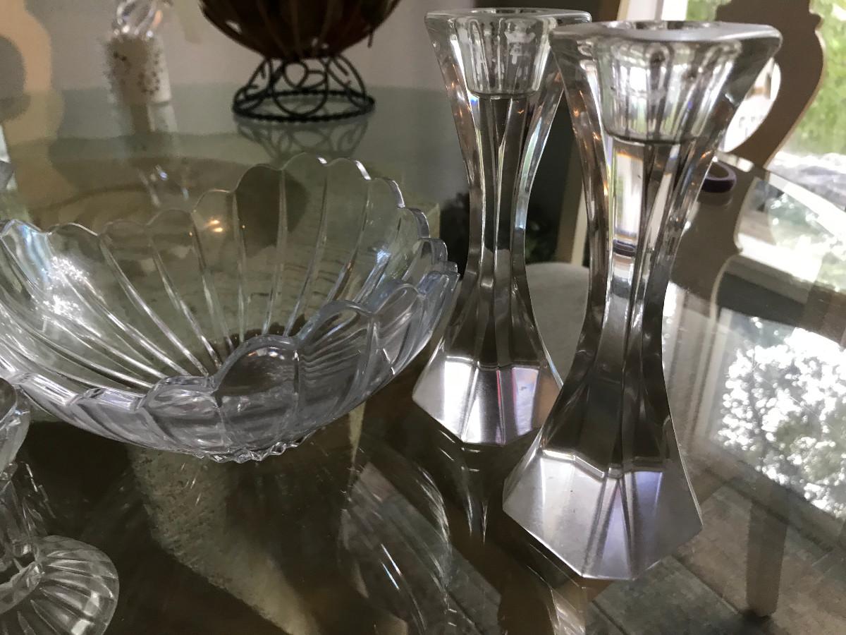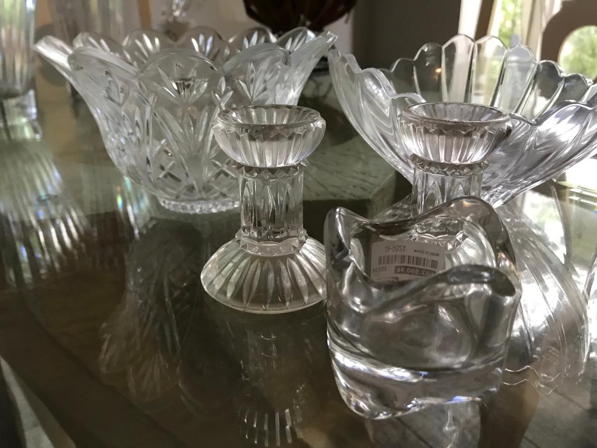 7PC GLASS/CRYSTAL, CANDLESTICKS, BOWLS & VOTIVE