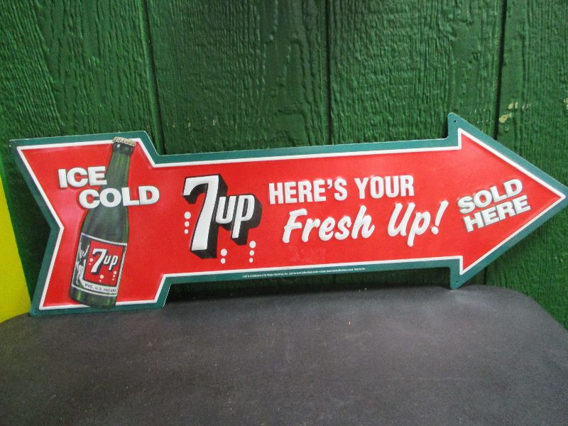 7up Soda Pop Arrow 7-up 27" Metal Tin Sign