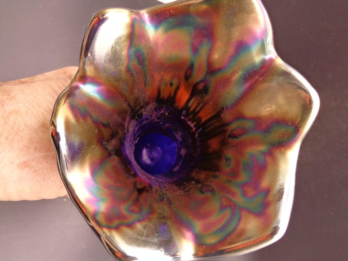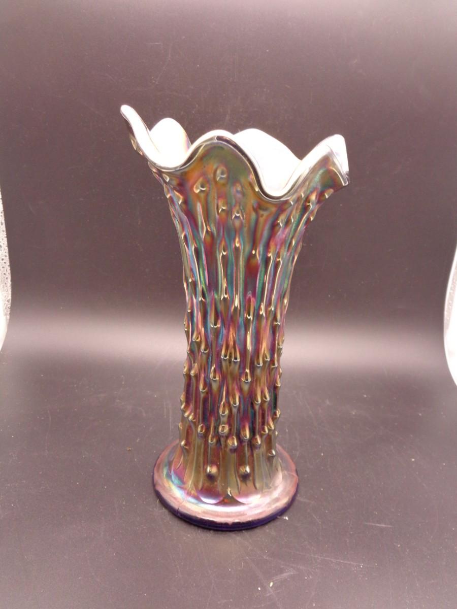 8 1/2" Fenton Blue Carnival Glass "April Showers" Vase Tre Trunk Swung #85