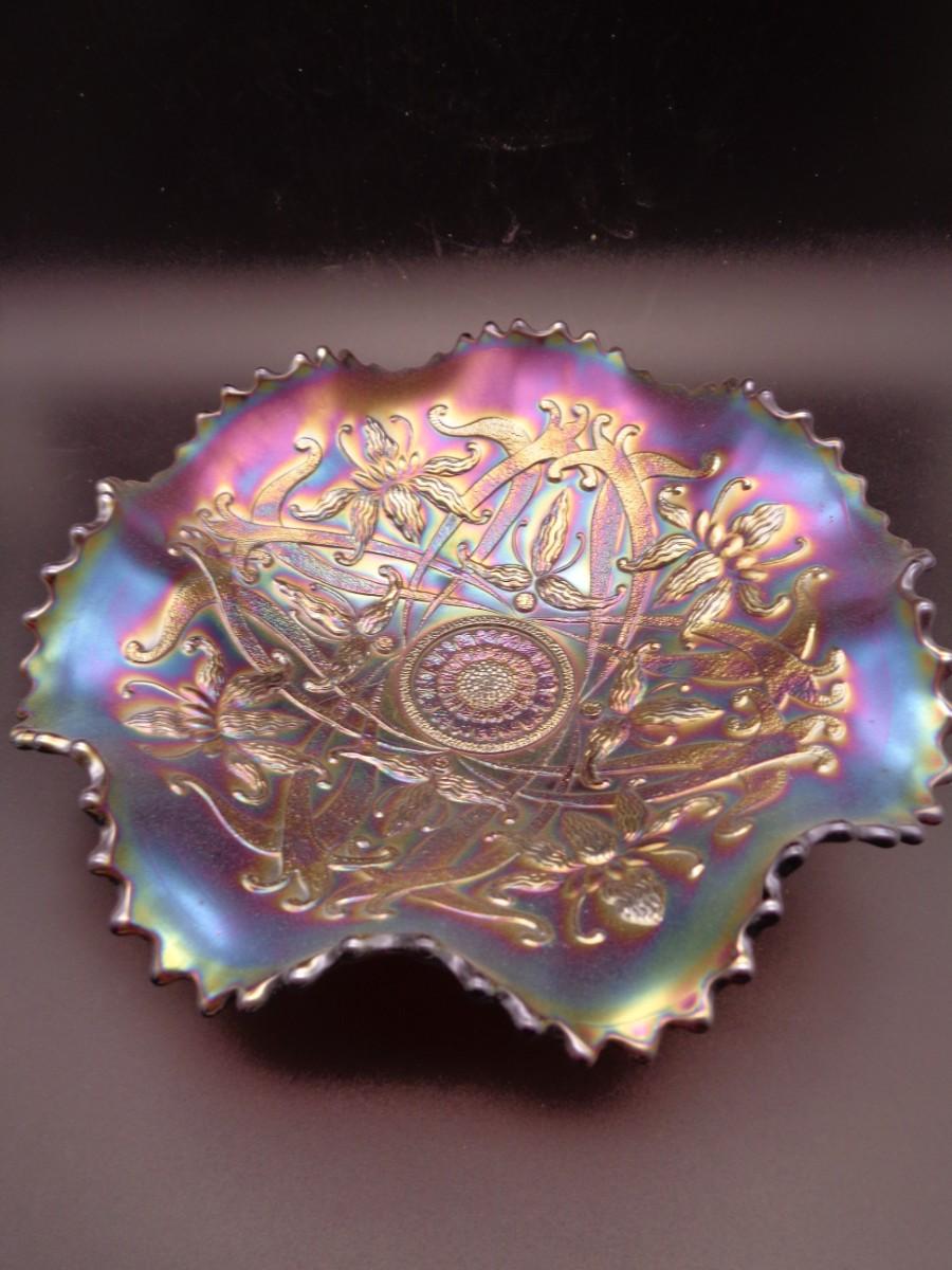8 1/2" Northwood Purple Carnival "Wishbone" Ruffled Footed Bowl #61