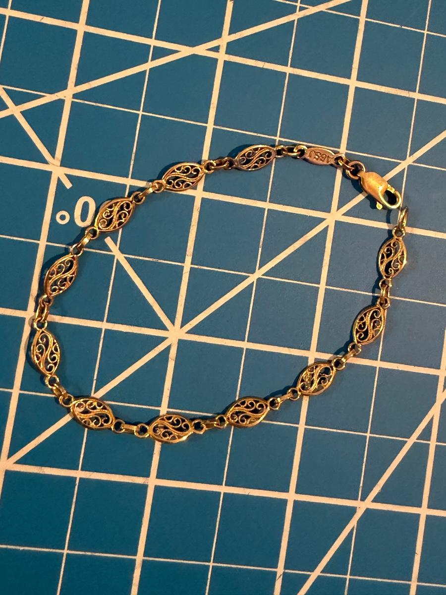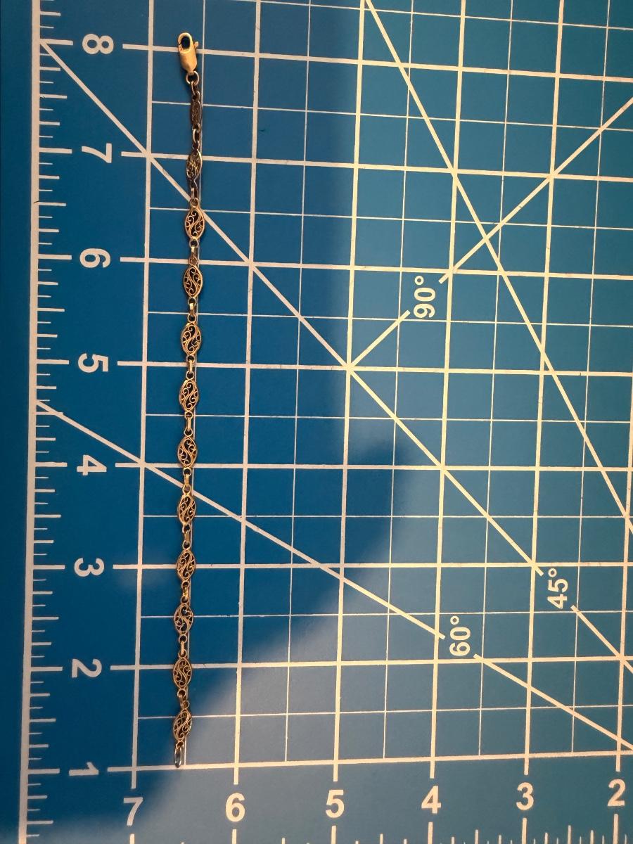 8” 14k Yellow Gold Filigree Bracelet Made in Italy 3 grams