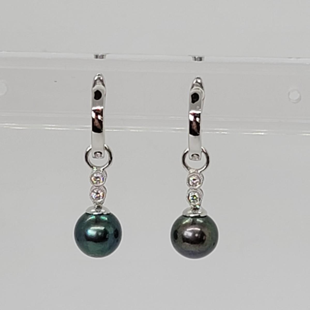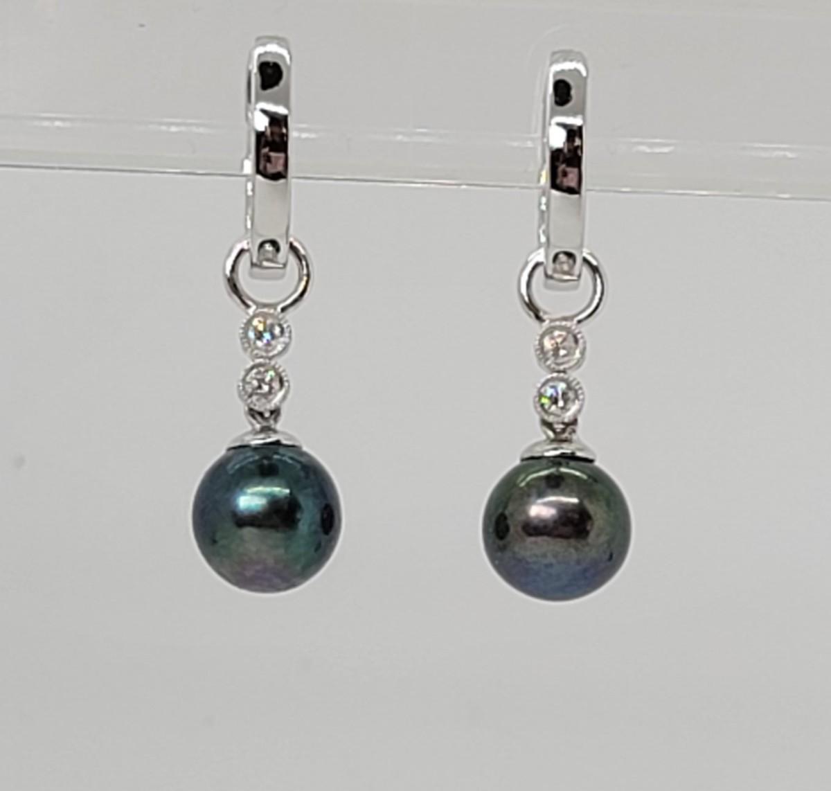 Pierced earrings are marked 750 18k and weigh 2.5g and dangling pearl with 2 diamonds are removable if you wish to just wear hoops, all Preowned but like new!