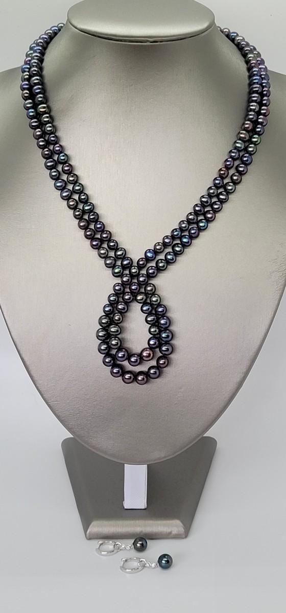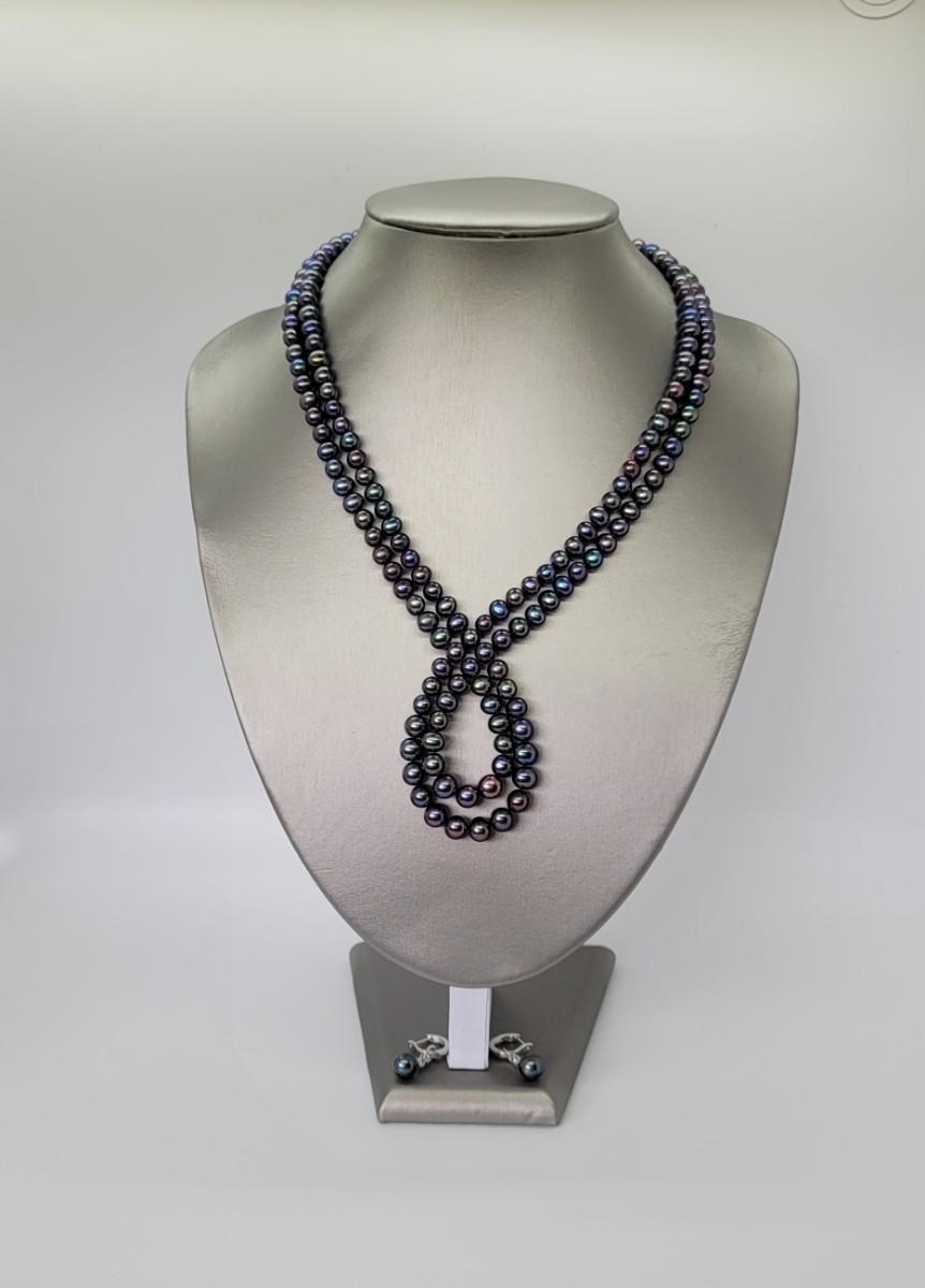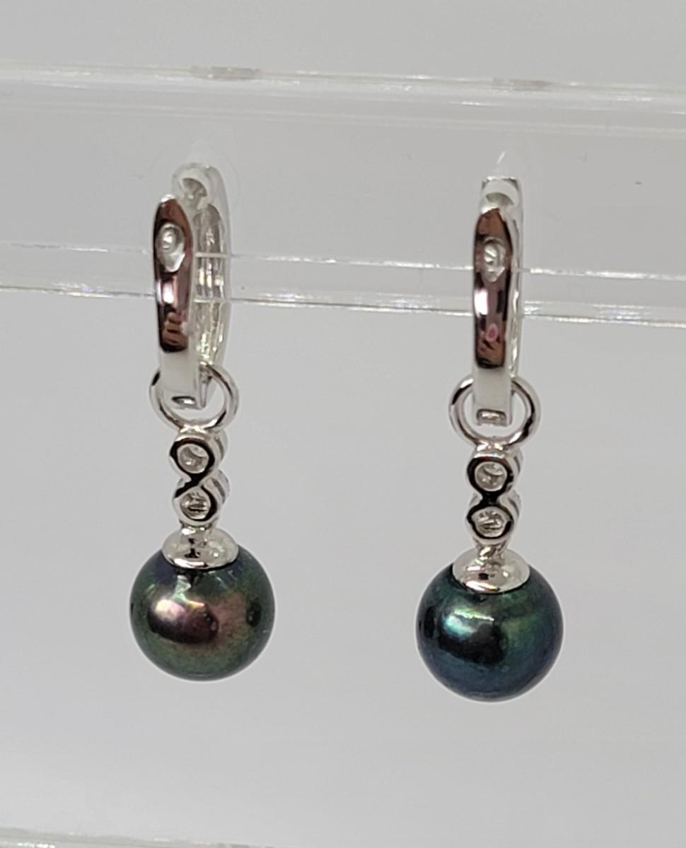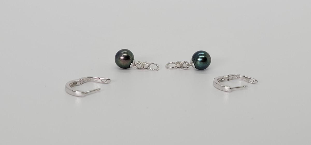 7: White Gold Earrings w/Cultured Pearl & Diamonds (18K 750) & Cultured Pearl Necklace (CGI 925)