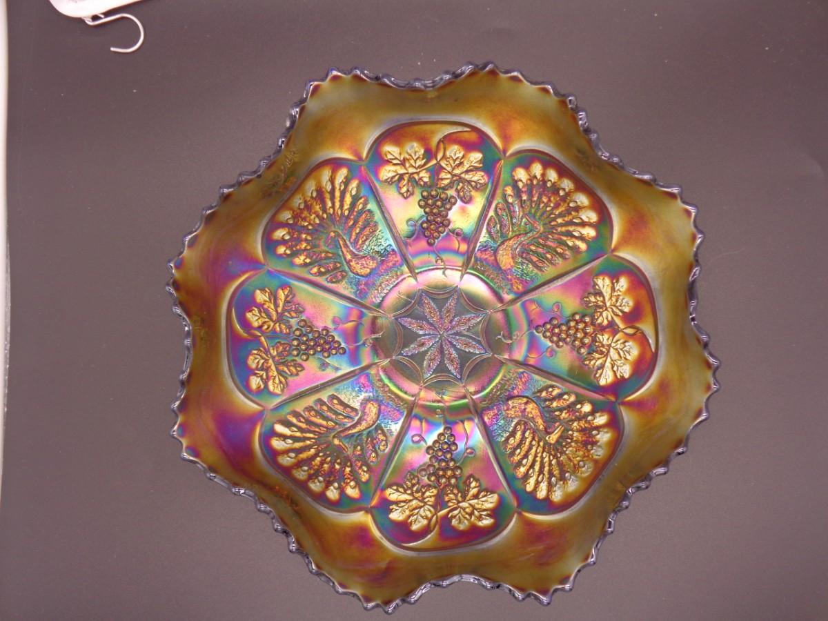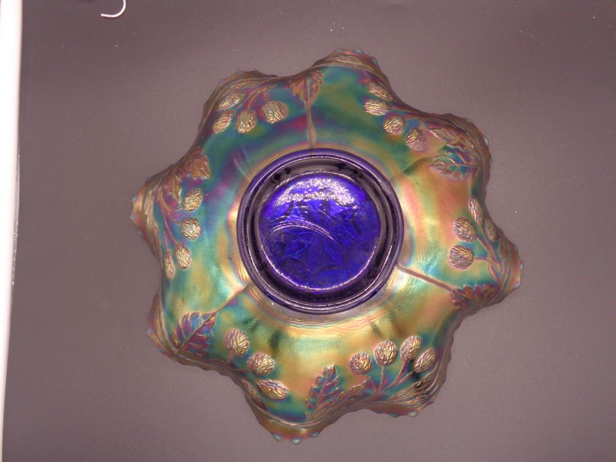 8 3/4" Fenton Blue Carnival Peacock & Grape #43
