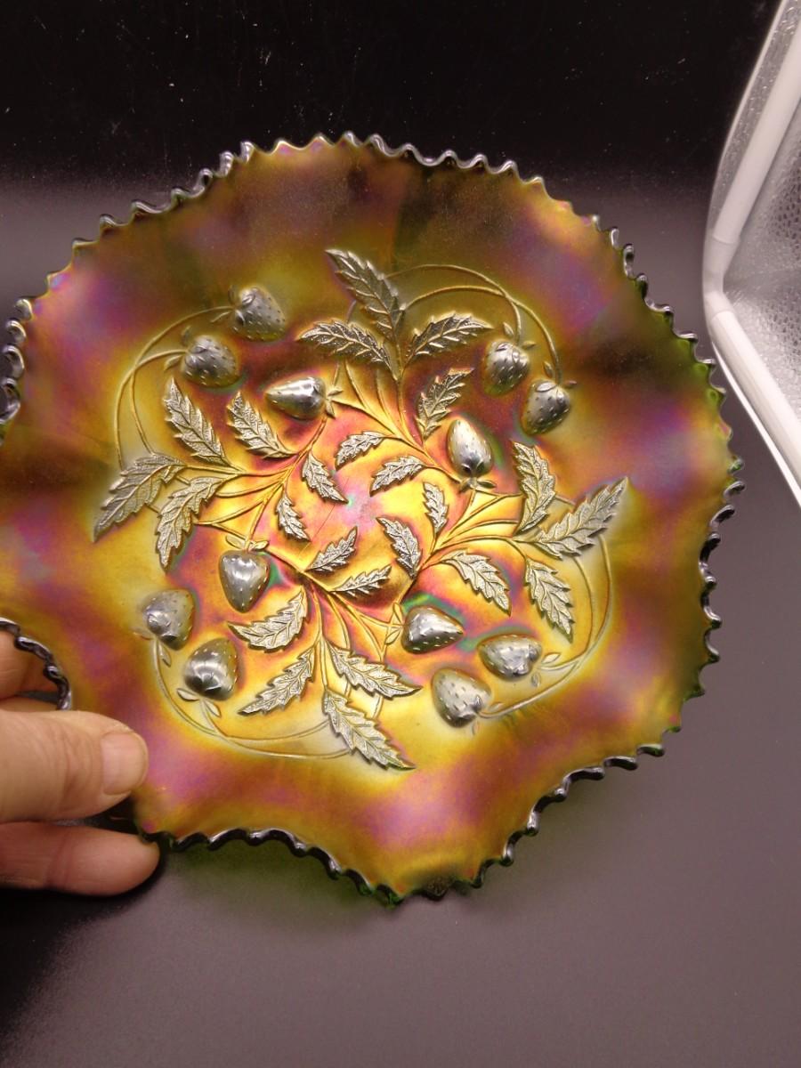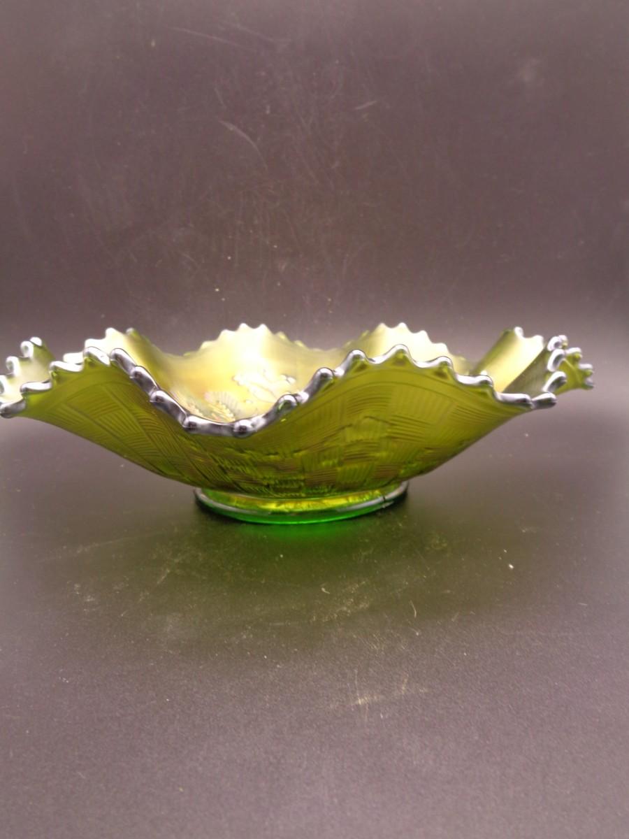 8 3/4" Northwood Green Carnival "Strawberry" Bowl #30