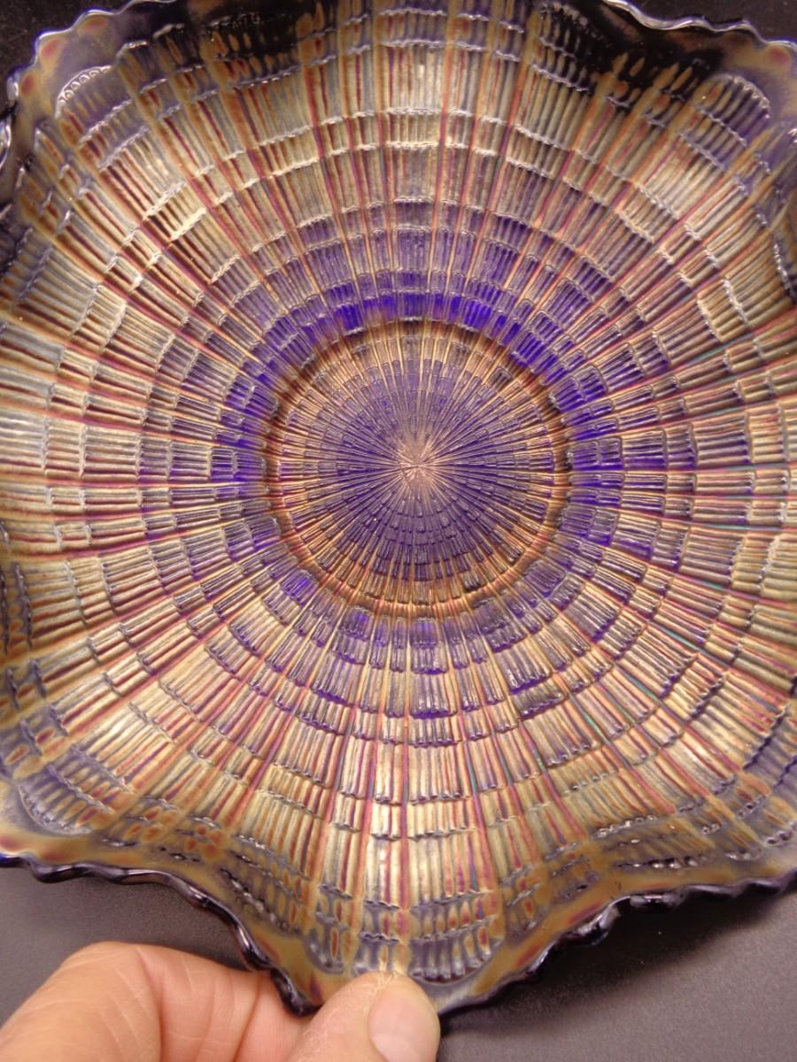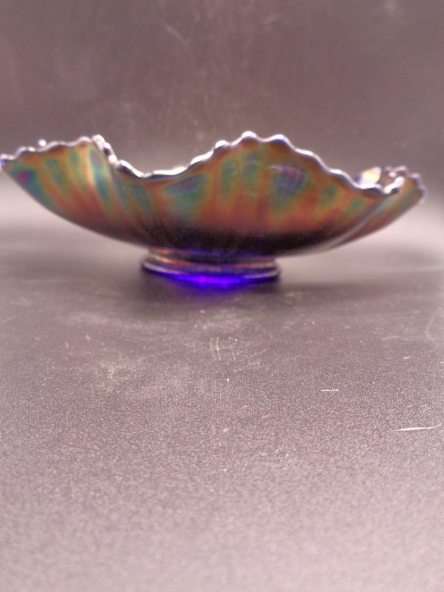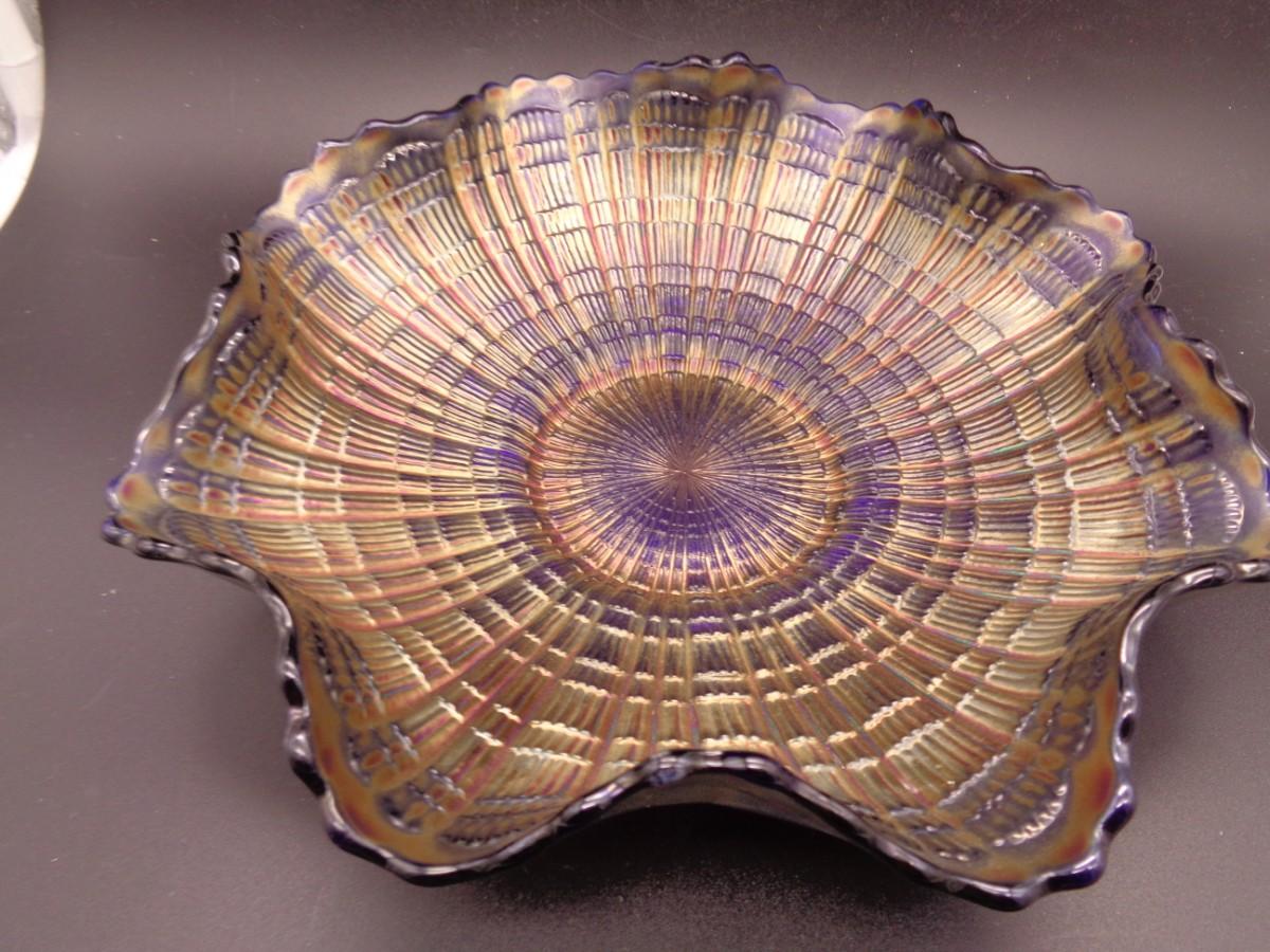 8 3/4" Rage Fenton Ruffled 8 Plaid Blue Carnival #40