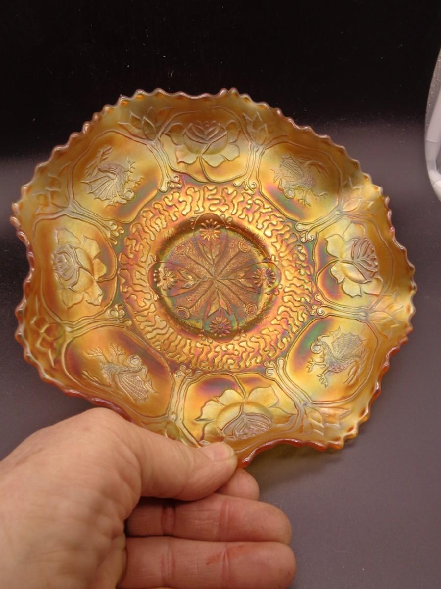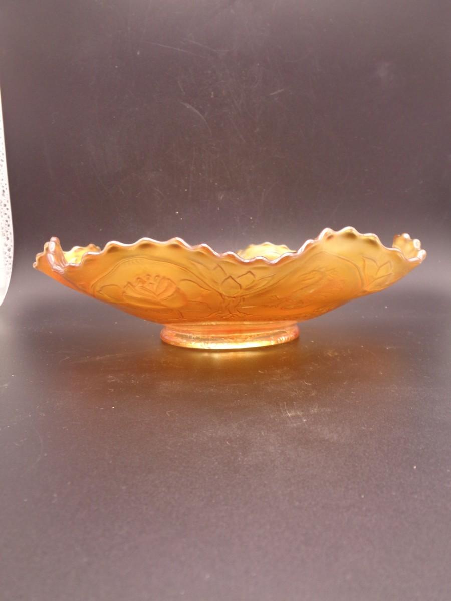 8 3/4" Rare Fenton Pumpkin Carnival Dragon & Lotus Ruffled Edge Bowl #36