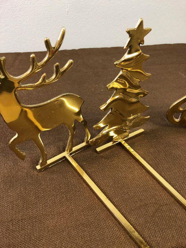 #8 4 BRASS Xmas Christmas Stocking Hangers