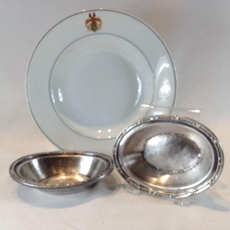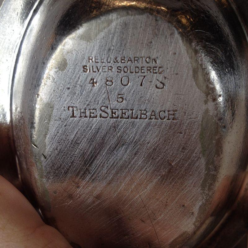 This offering is for 3 pieces of old Historic Seelbach Hotel Serving Dishes. The lot includes one soup/pasta bowl which measures 9-inches in diameter and is emblazoned with the Seelbach Hotel Logo. Included in this lot are two heavy Reed & Barton produced, silverplated, hotelware small serving bowls. These two bowls show some dings and wear consistent with age and use. "The Seelbach" is marked on the bottom and embossed with the logo on the exterior sides. Reserve/Starting Bid is $15.
