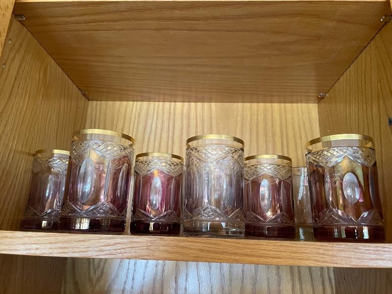 8 antique gold rimmed glasses