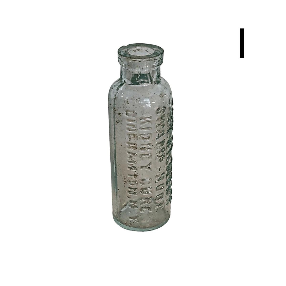 1. Antique Aqua Glass Round Bottle - 3"H - Marked "SAMPLE BOTTLE DR. KILMER'S SWAMP-ROOT KIDNEY CURE