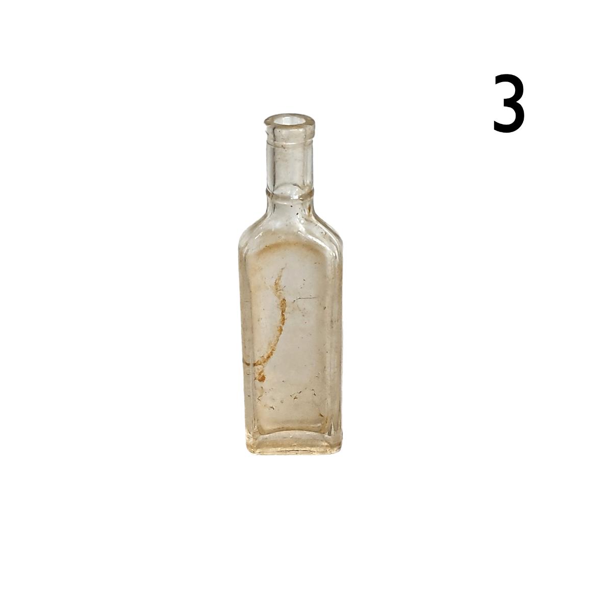 8. Antique Clear Glass Square Bottle - 2.5"H - Marked "SAMPLE", "PINEOLEUM", PHYSICIAN'S" & "PINEOLEUM"