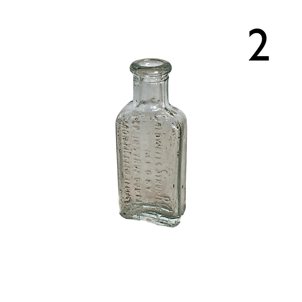 2. Antique Clear Glass Rectangular Bottle - 2"H - marked "CALDWELL'S SYRUP PEPSIN MFD BY PEPSIN SYRUP COMPANY