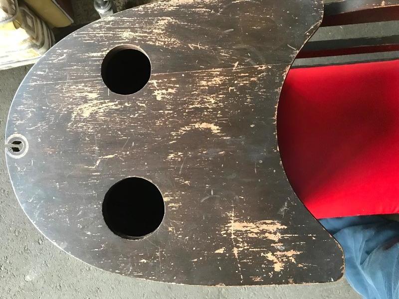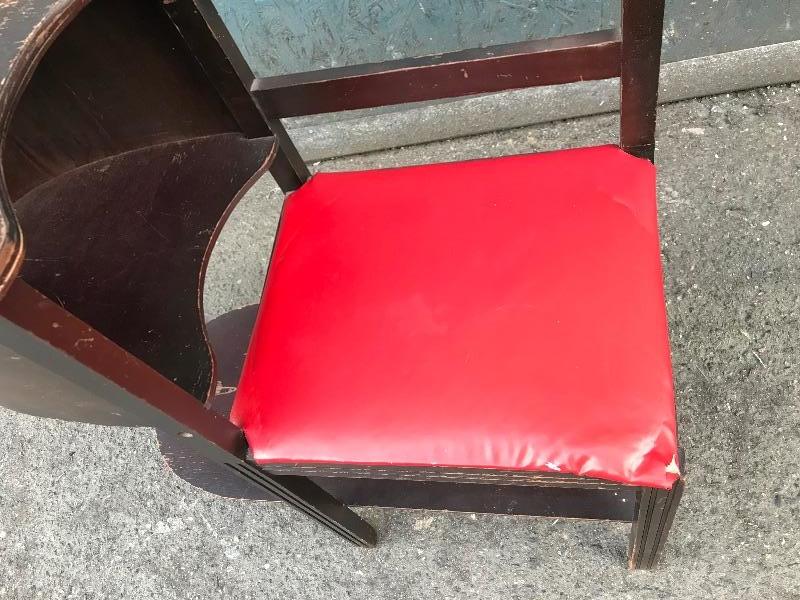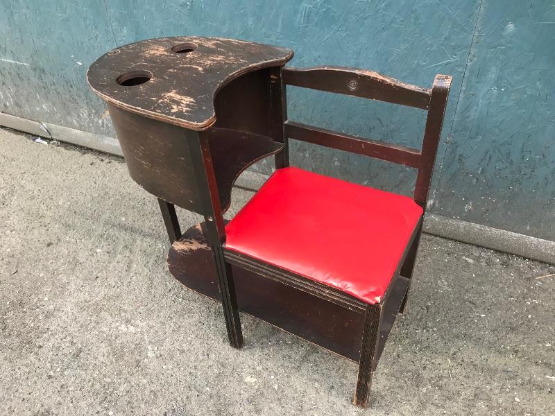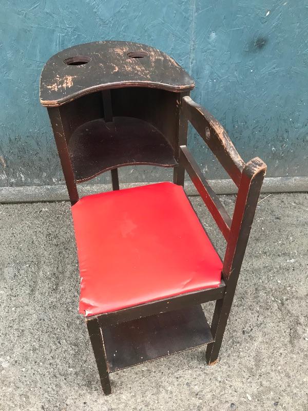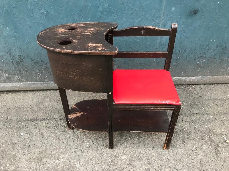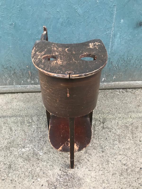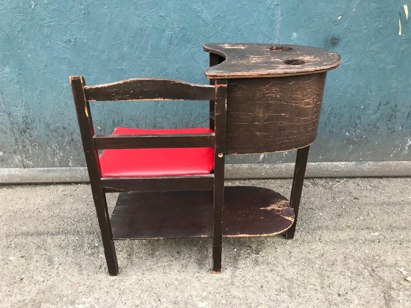 Absolutely adorable little old piece of furniture! The finish is chipping quite a bit, but is in good structural condition. It features a shelf and a storage cubby. Could make a really great plant stand!