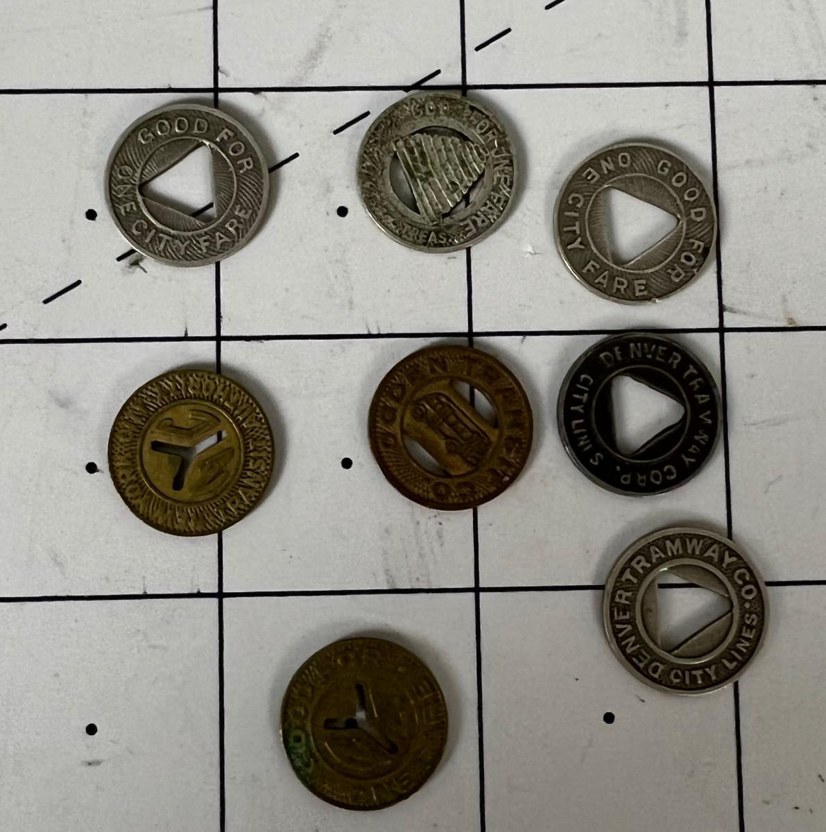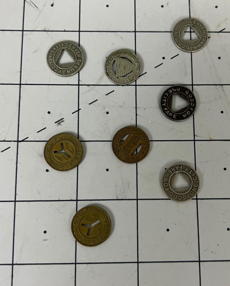 8 Antique Transit Tokens, NY and Denver