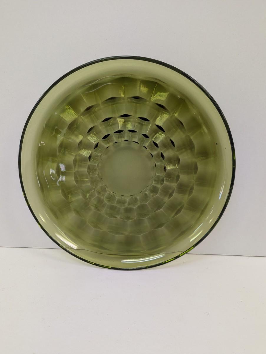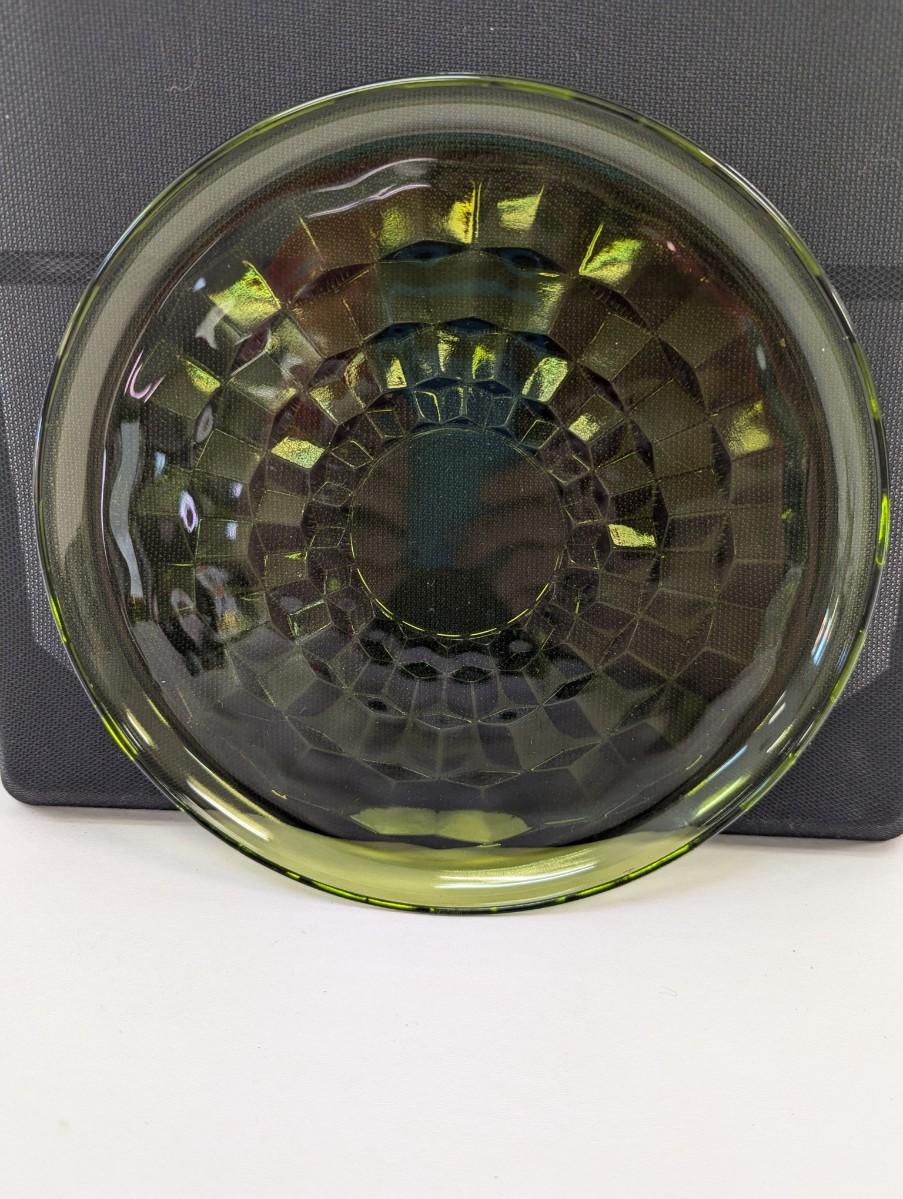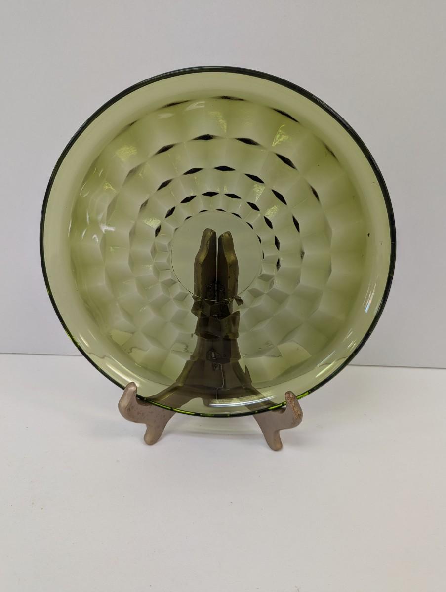8 - Approx 8 3/4" Indiana Glass Whitehall Olive Avocado Cube Pattern Plates