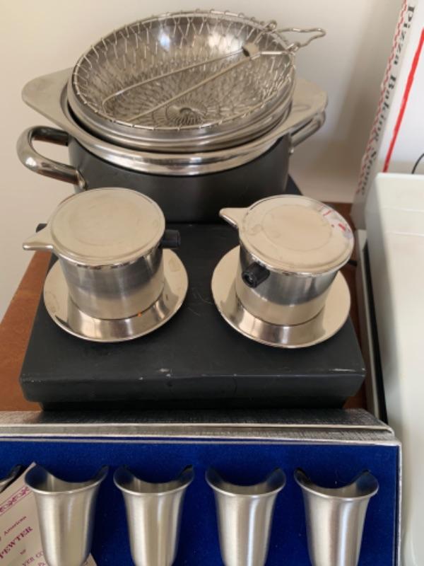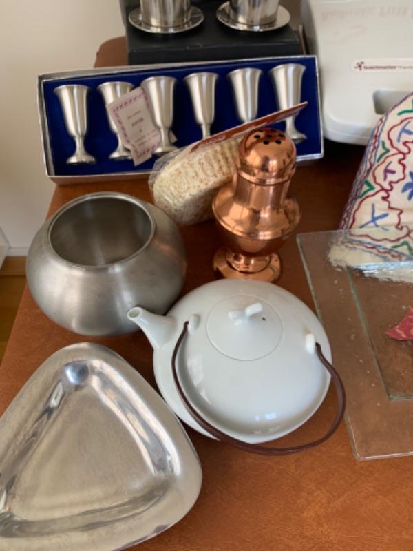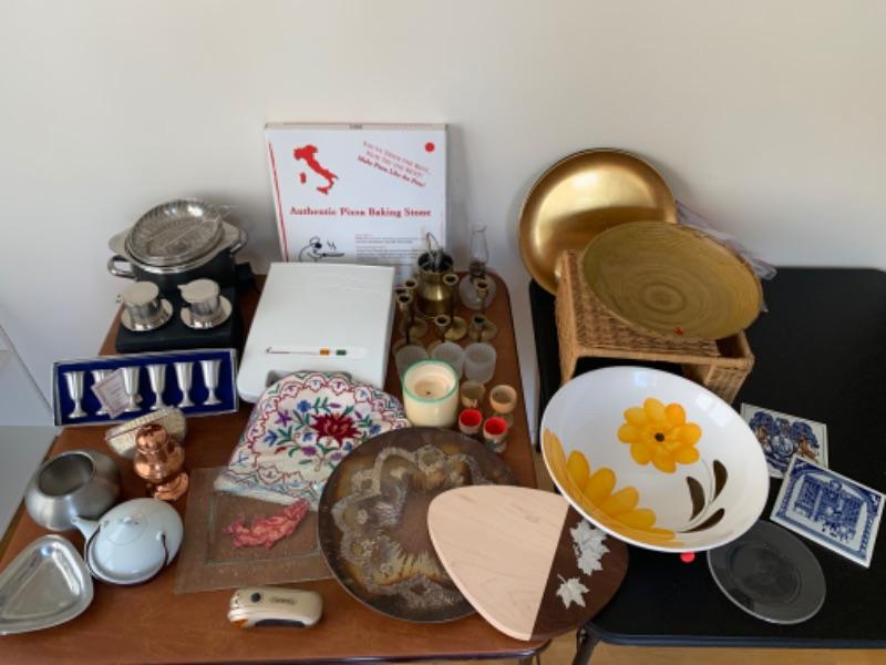 8. Assorted kitchenware (bowls, cutting boards, pizza stone, pewter, thermometer, crock pot, etc.)