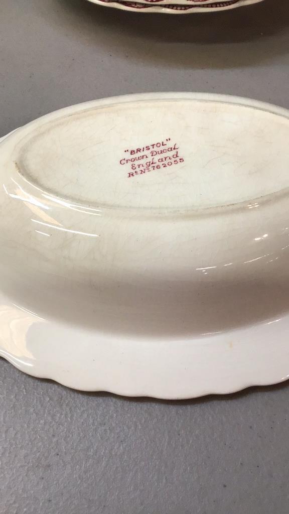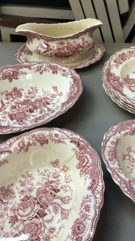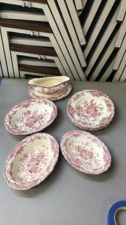 ‘Bristol’ pattern..4 soup bowls, 3 serving bowls, attached gravy boat..*chips and hairline cracks