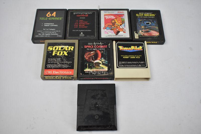 8 Atari 2600 Games: Asteroids -to- Time Pilot, Plus 1 Mystery/No Label