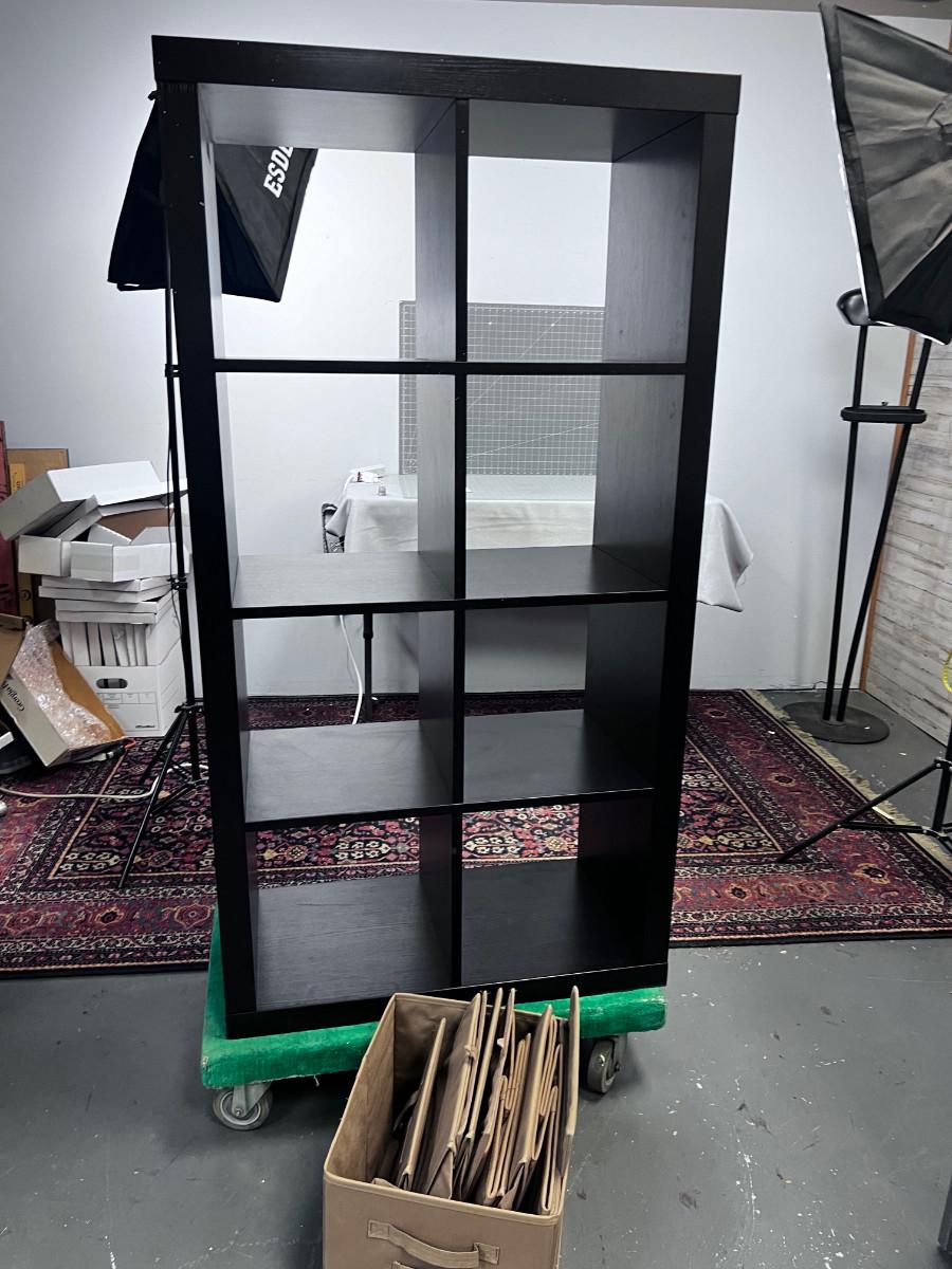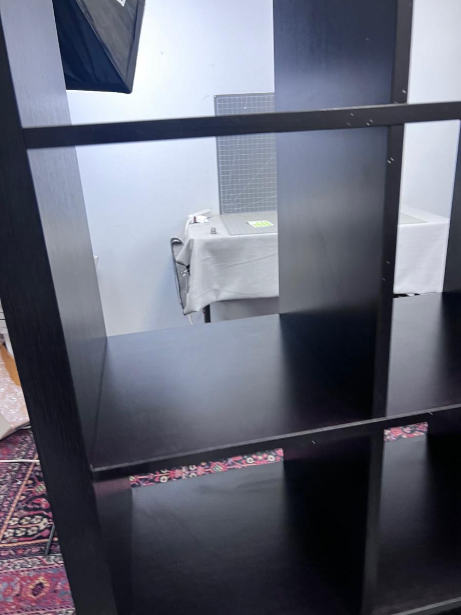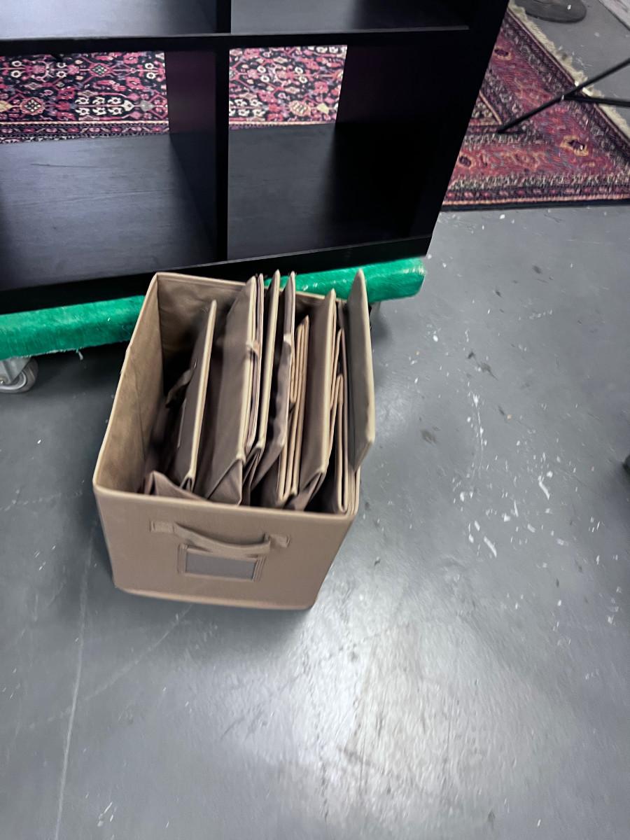 Good Condition. 31 x 16 x 59" has 6 of 8 Tan Cubby's