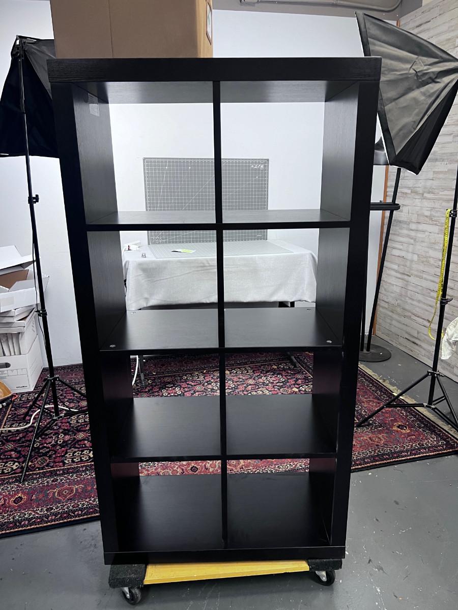 Good Condition. 31 x 16 x 59" has 6 of 8 Tan Cubby's