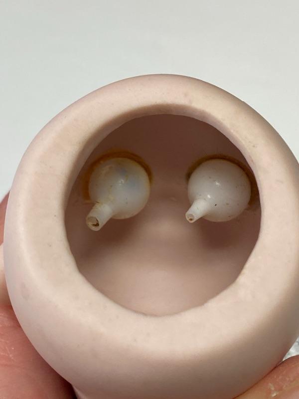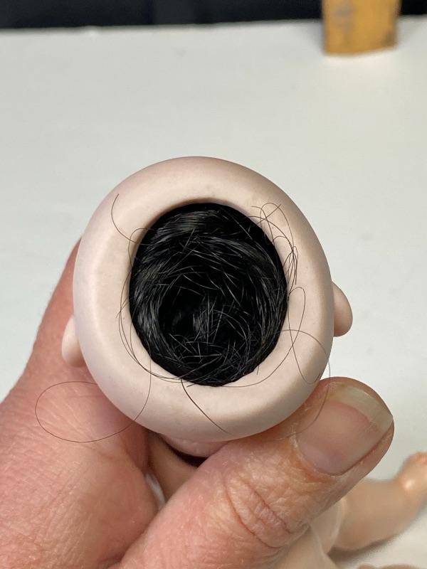 8" bisque and composite repro doll. Unfinished. The doll is signed on back of head, Pat B 1979 165.5. She has hair pieces and a hair net inside her head, not sure why.