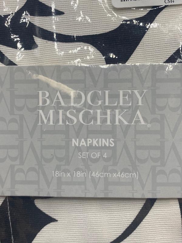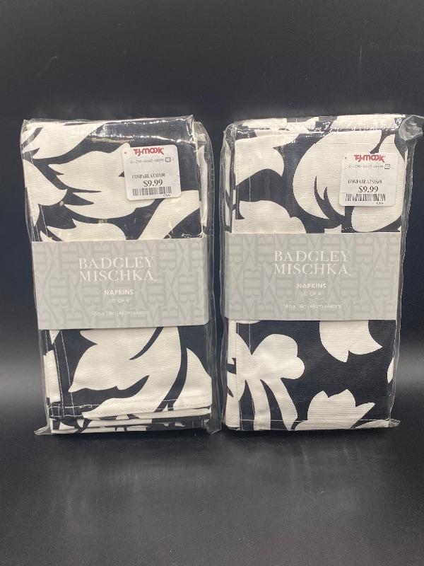 Badgley Mischka Dinner Napkins. Cloth, 18" square. Two packs of 4 (8 total). Large black and white print.