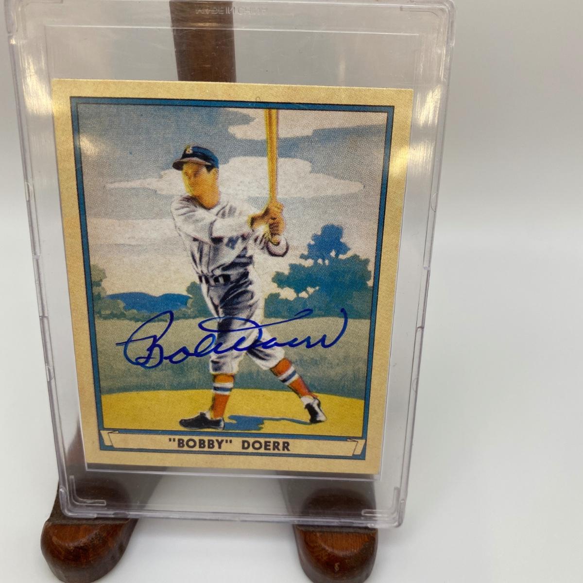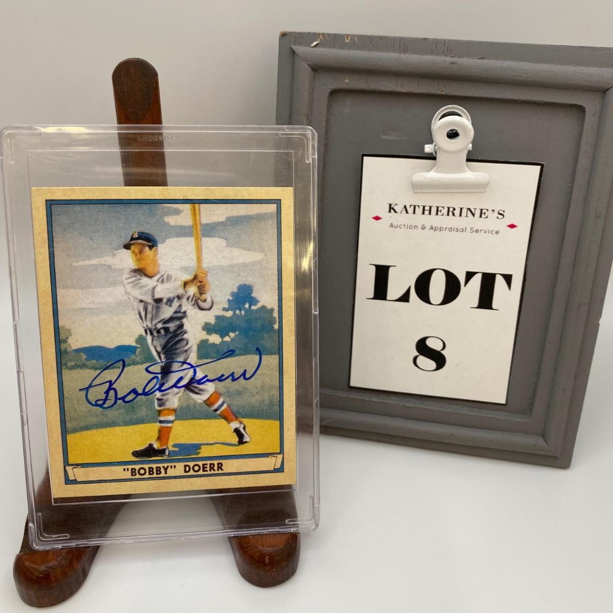 “Bobby” Doerr card Signed with no Certificate of Authenticity, item is assumed authentic however not guaranteed. Please see photos for details and condition. ::: Shipping is available on this lot. If you require shipping you must let us know at the close of the auction. We will coordinate with you after the item has been won. Shipping fees will include insurance up to or exceeding the value of all items being mailed. If you have any questions regarding this lot please contact the auctioneer either via this website, by direct email or by phone. PICK UP TIMES and other important information can be found in the TERMS and DESCRIPTION of the auction. Please take a look for pertinent information. Thanks!