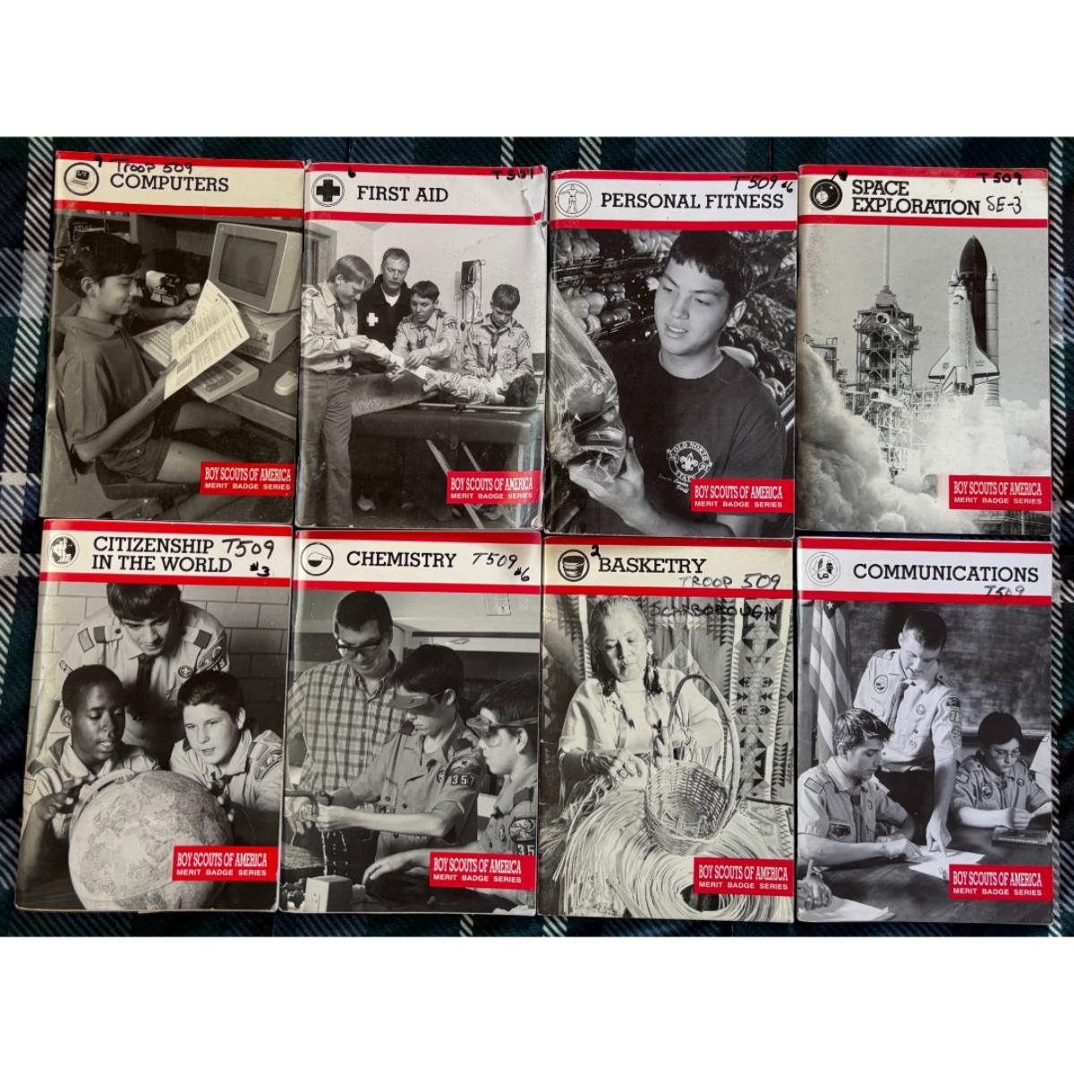 8 Boy Scouts BSA Merit Badge Books: Space Exploration, First Aid, Computers