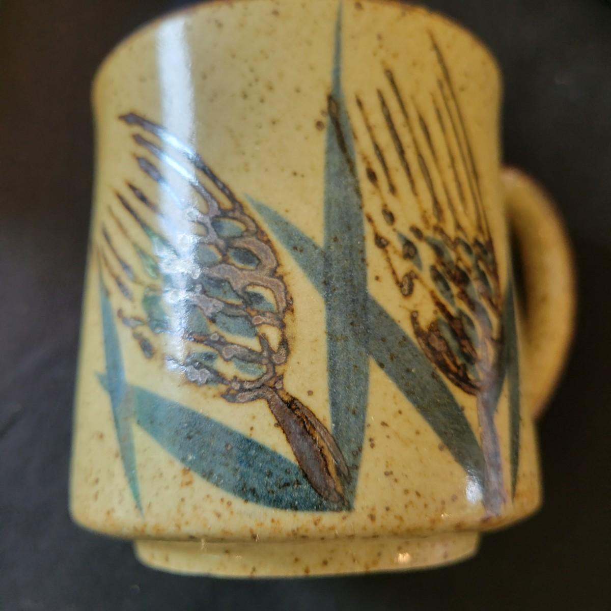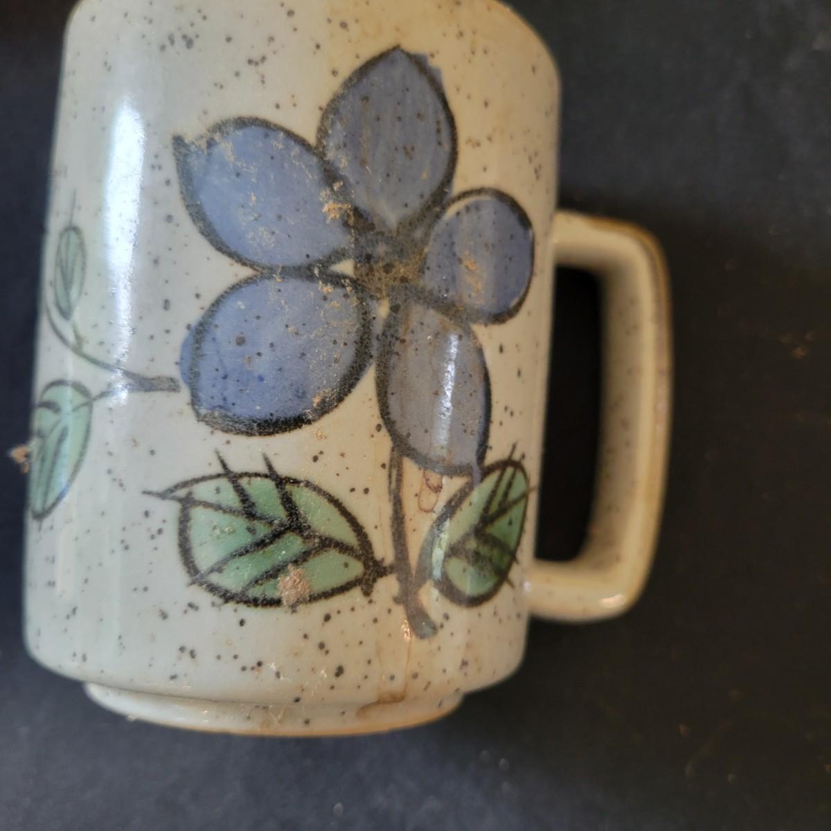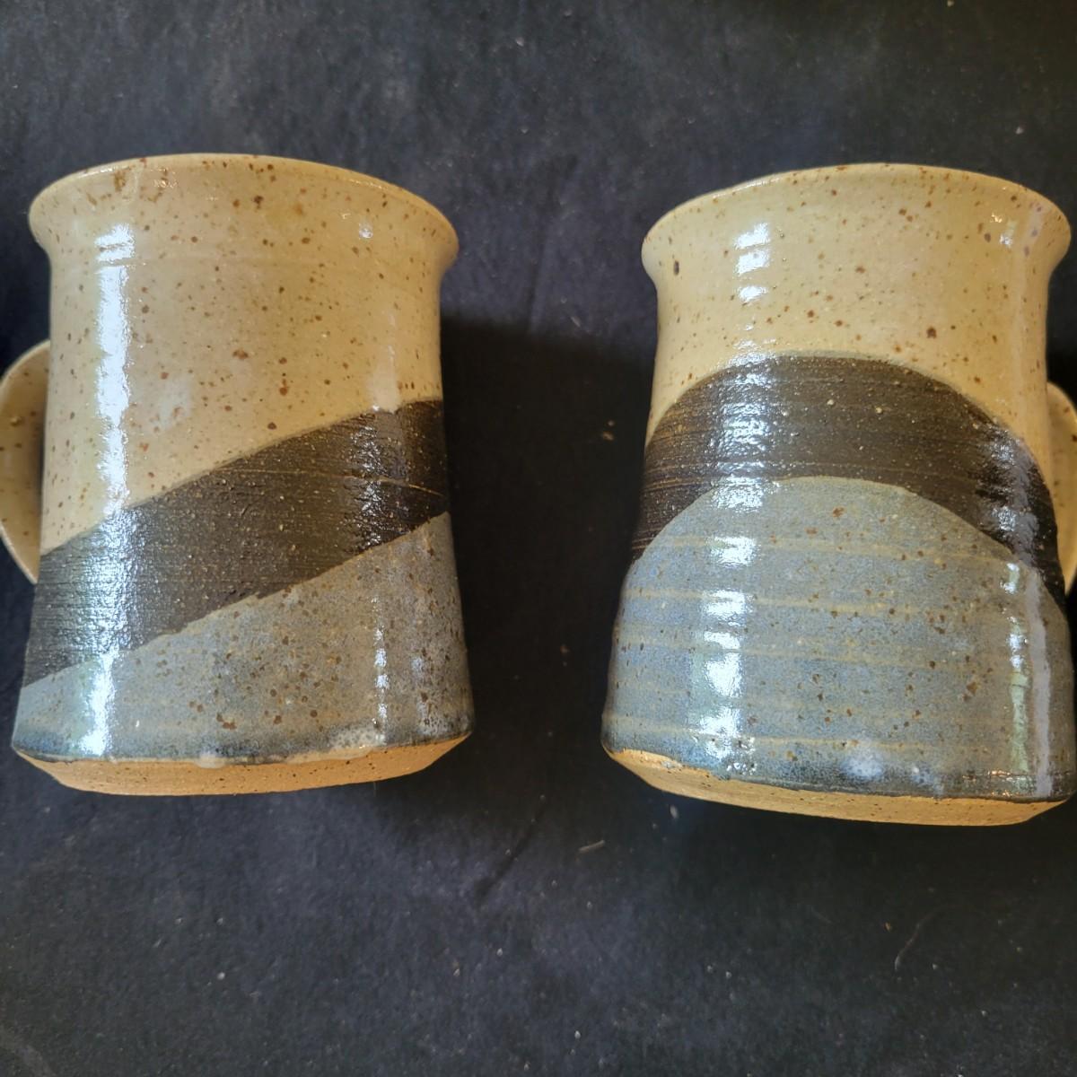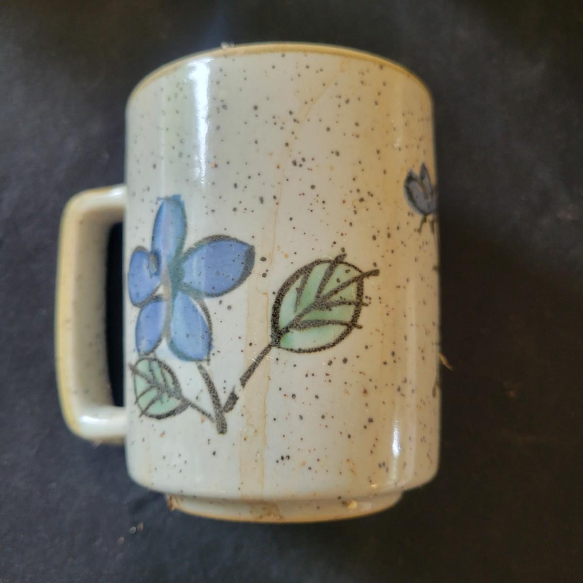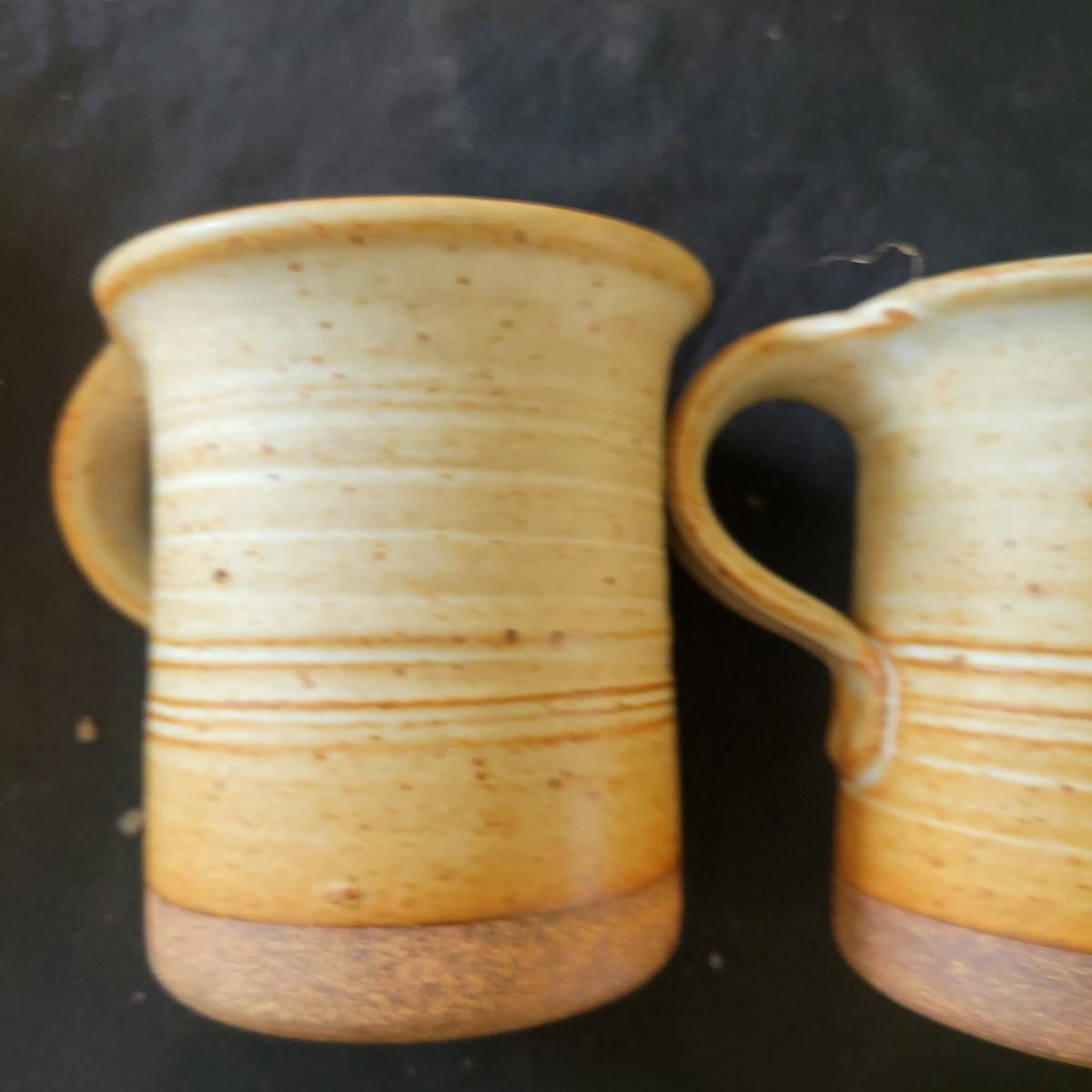An assortment of ceramic coffee mugs with similar glazes. We have not found chips or breaks in any of them and most appear to be production volume ceramics. Three are random designs, three are of a matching set, and two are of a different matching set. Shipping available