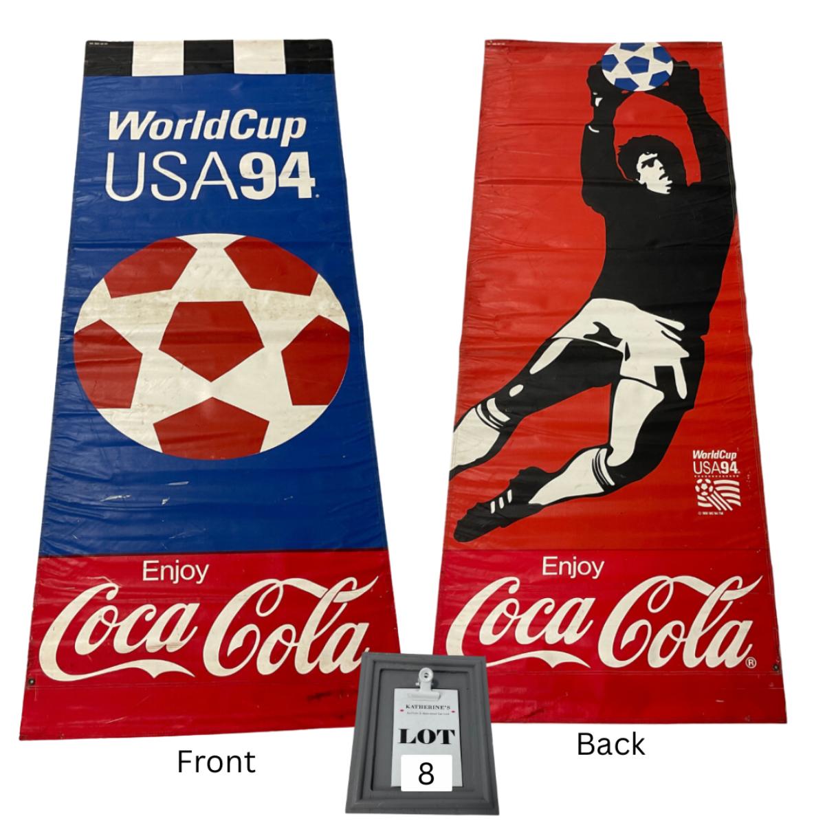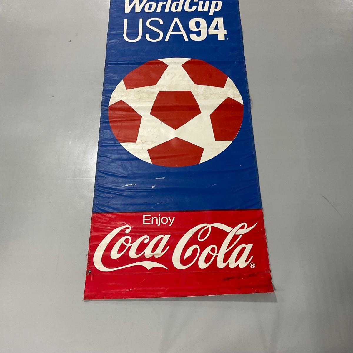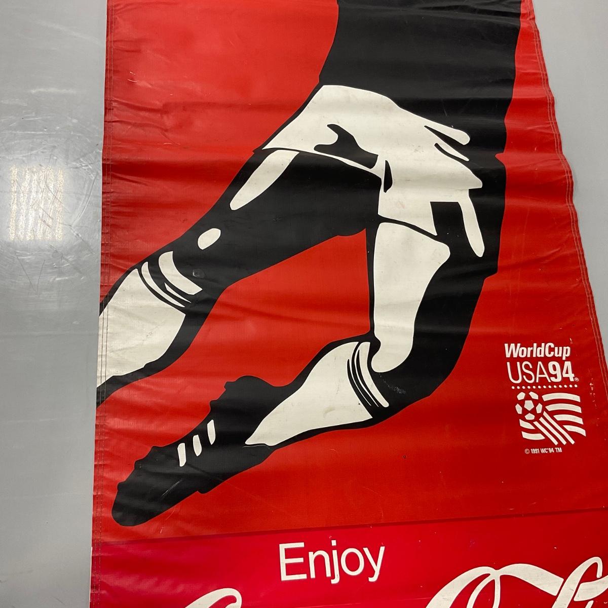One vintage World Cup (USA) 1994 Domestic Terminals banner. Over 350 banners adorned roadways and terminals in preparation for the arrivals to the 1994 World Cup. The banners were supplied by corporate sponsors, including Coca Cola, First Chicago Bank, McDonald’s, The Chicago Tribune and American Airlines. This banner is very large and perfect for any collector in your life. Hang this in the garage or inside the possibilities are endless. This piece is roughly 35 inches wide by 93.5 inches long. Please see photos for details and condition. ::: Shipping is available on this lot. If you require shipping you must let us know at the close of the auction. We will coordinate with you after the item has been won. Shipping fees will include insurance up to or exceeding the value of all items being mailed. If you have any questions regarding this lot please contact the auctioneer either via this website, by direct email or by phone. PICK UP TIMES and other important information can be found in the TERMS and DESCRIPTION of the auction. Please take a look for pertinent information. Thanks!